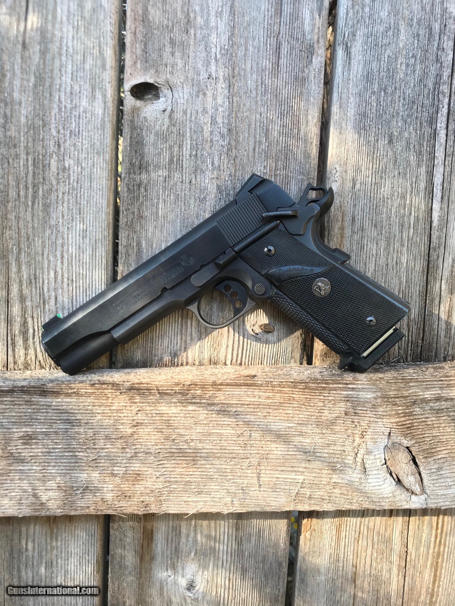 Description: This model comes from the factory with the beaver tail and vertical cocking serrations. Not important to most, but if you like the look, this is very hard to come by. I have never shot this gun but I purchased it used. The condition is basically brand new, as there are no signs of wear or loss of blueing anywhere. The mainspring housing was upgraded and the trigger is a Wilson combat, as is the hammer..so those factory parts aren’t available. I can replace the Pachmyer grips with brown wood panels with Colt ensignia if you want. I’ll answer any questions as best I can, and I’ll provide more pics if necessary. Comes in factory blue Colt case. SOLD Manufacturer: Colt Model: CCG Caliber Info: 45ACP Condition: Used Metal Condition: Great Bore Condition: Great |
