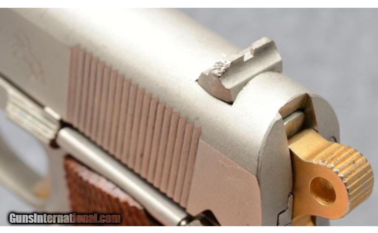 Description: SOLD Caliber Info: .45 Auto Metal Condition: Scratches and dings to the flat finished steel. Rear sight exhibits damage from being struck on the left side. The name "Joe L. Davidson" has been engraved on the top of the slide. Bore Condition: Bright and shiny Barrels: 4 Triggers: Serrated aluminum Stock: Checkered two piece walnut grips and Colt emblem Weight: 35 oz Sights: Dove tailed rear sight with serrated front blade Item Location: Fort Worth, TX |