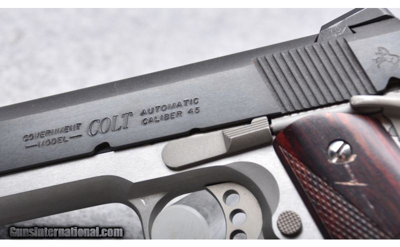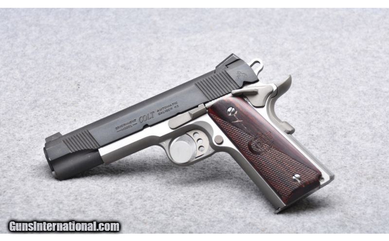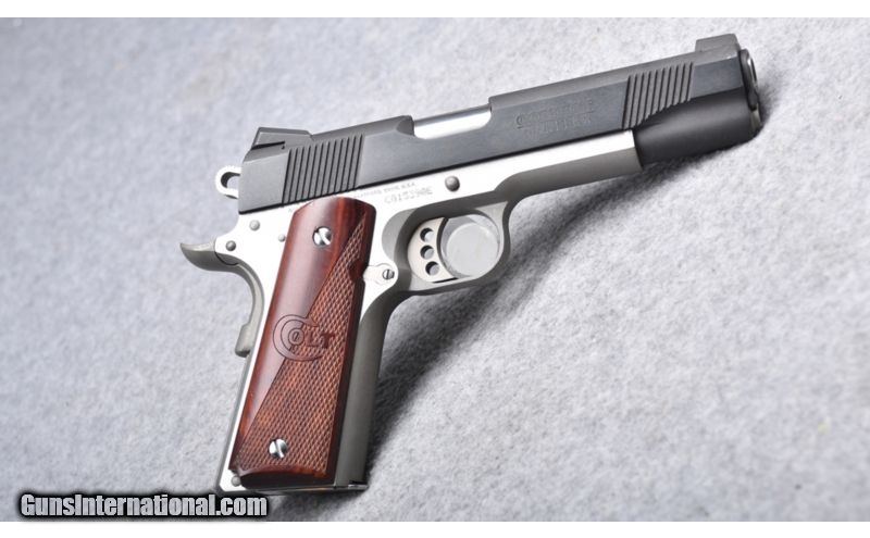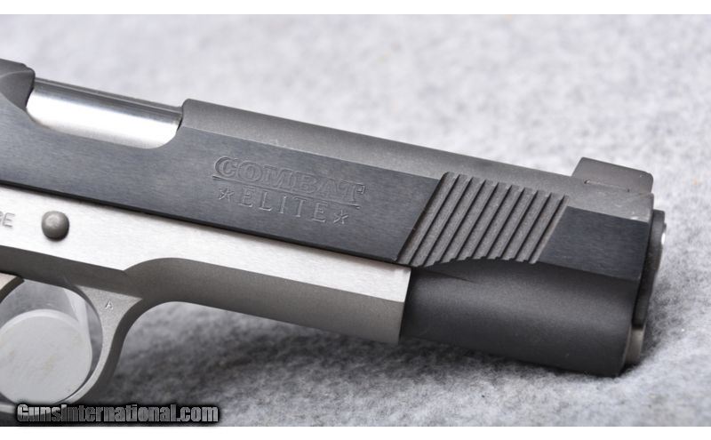 Description: This is a Colt Combat Elite 1911 style .45 ACP caliber semi-auto pistol. It has a blue steel slide and a stainless steel frame, with checkered brown wood grips. The pistol has a 5 inch stainless steel National Match barrel, and a beaver tail extended grip safety. The bore is bright with strong rifling and no pits.. The front sight is a blade, and the rear sight is a Novak, adjustable for windage. The metal parts of the pistol are excellent, with only minor handling marks. The grips are excellent, with minor handling marks. Also included is a factory case, with manual, lock, and a spare magazine. SOLD Caliber Info: .45 ACP Metal Condition: Excellent with minor handling marks Wood Condition: Excellent with minor handling marks Bore Condition: Bright Bore, Strong Rifling Barrels: 5 inch Weight: 36 ounces Sights: Ramp blade front and adjustable Novak rear sight. Extras: Factory case, with manual, lock, and spare magazine. Item Location: Reno, NV |