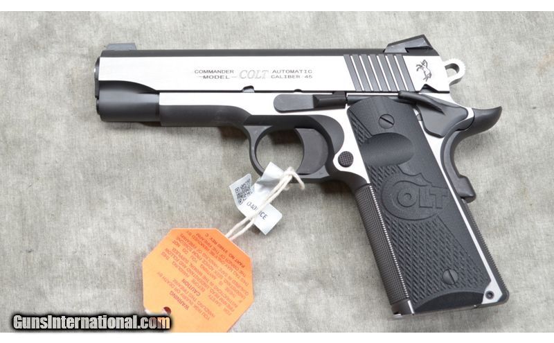 Description: This Commander's features include 3-dot night sights, rubber grips, and two-tone steel frame. Has knurled front and back straps. In like new condition. .45 ACP SOLD Chambers: 8 + 1 capacity. Metal Condition: LNIB. Wood Condition: LNIB. Barrels: 4 - 1/4 inch stainless steel. Triggers: Factory trigger. Sights: Three dot night sights. Item Location: Rogers |