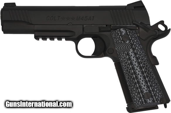 Description: Guns Listing ID: 236970 Colt CQBP Close Quarters Battle Pistol .45 ACP, 5\" Barrel, Checkered Grip, Black Finish The Colt Rail Gun, or Colt Marine Pistol, has been selected by the United States Marine Corps as their Close Quarters Battle Pistol (CQBP). This marks the first time since World War II that a Colt 1911 is being shipped to the United States Government. To honor the brave men and women of the U.S. Marine Corps, the Colt Marine Pistol is being made available in limited quantities to consumers. This pistol features a desert tan cerakoted stainless steel receiver and slide, Novak 3-dot night sights, an enhanced hammer, a Colt tactical ambidextrous safety lock, a 5 in National Match barrel, a MIL-STD 1913 accessory rail, and a flat, serrated mainspring housing with a lanyard loop. SOLD Manufacturer: COLT Model: CQBP Caliber Info: .45 ACP Condition: new Barrels: 5 BARREL Action: SEMI AUTOMATIC Finish: BLACK Weight: 2.4 LBS. |