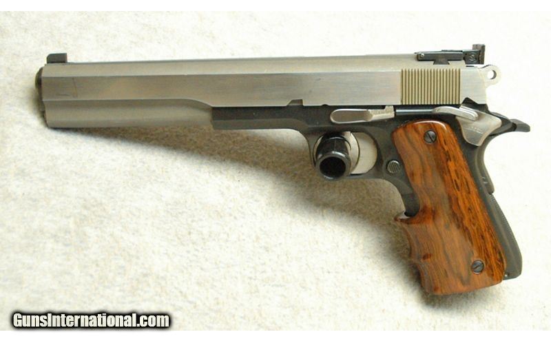 Description: Colt 1911A1 Custom Long Slide Pistol. Excellent condition, with one mag. 7" Target barrel, Bomar sights, custom wood grips and crisp trigger pull. A good choice for target practice or centerfire pistol shooting competitions. .45 Auto SOLD Chambers: Semi auto Metal Condition: Excellent Wood Condition: Excellent Bore Condition: Bright Barrels: 7 Triggers: Single action Butt Pad: Wood grips Sights: Adjustable sights Item Location: La Vista, NE |