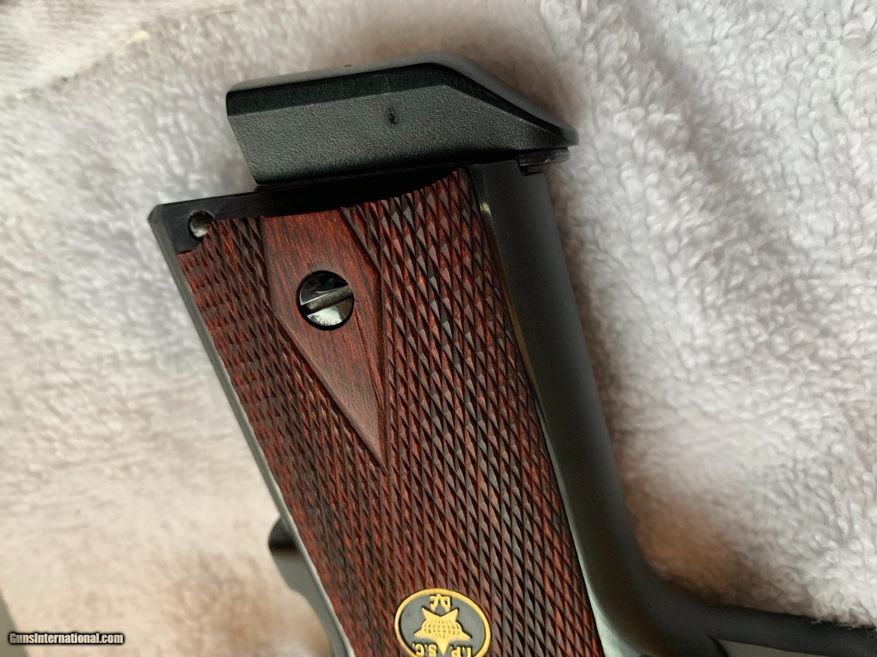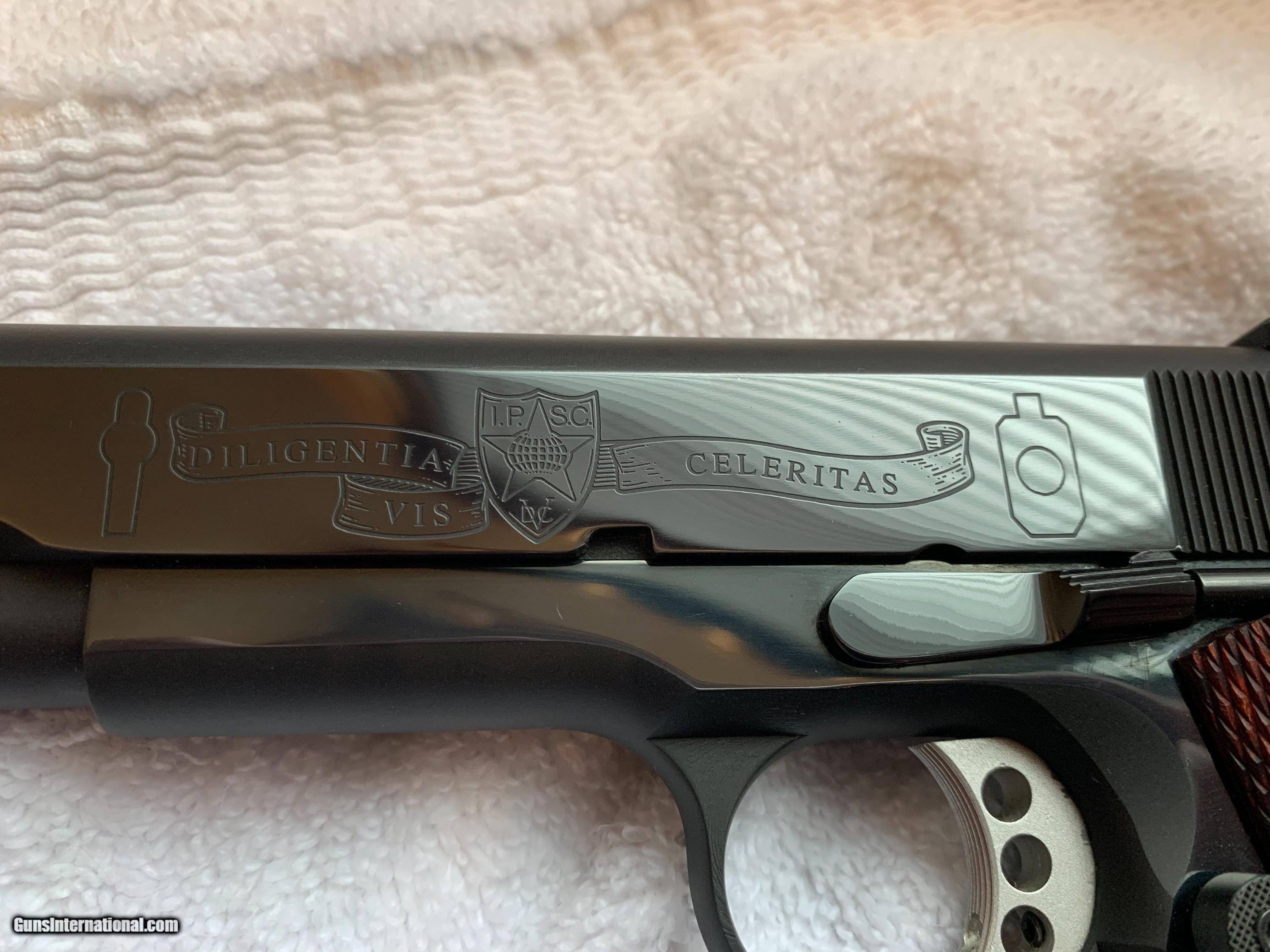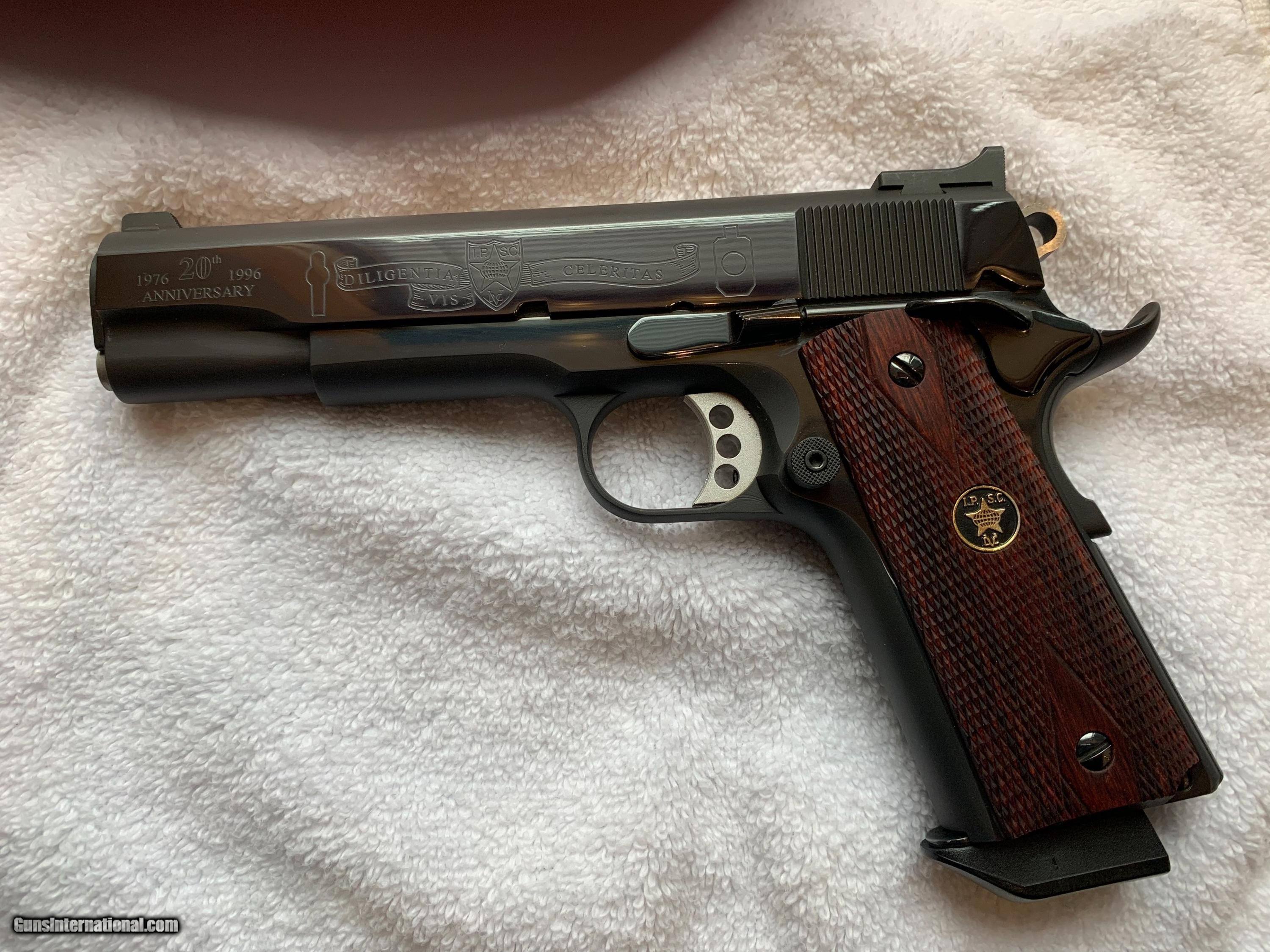 Description: SALE PENDING receipt of funds--Colt Custom Shop IPSC 20th Anniversary Model 45 ACP. Limited run of only 1500. Highly polished slide, frame and controls. Left side of slide roll marked with IPSC Anniiversary info. Right side says "Colt Tactical Model". Heinie front and rear sights. Extended ambi safety. S&A grip safety beautifully blended into frame. Checkered flat mainspring housing. Rosewood checkered grips with IPSC medallions. Two Colt magazines with bumper pads. All original in 99% like new condition with box and all papers. Thanks for looking. Payment by U S Postal money order. SOLD Rifle Caliber: .45 ACP Handgun Caliber: .45 ACP (.45 Auto) |