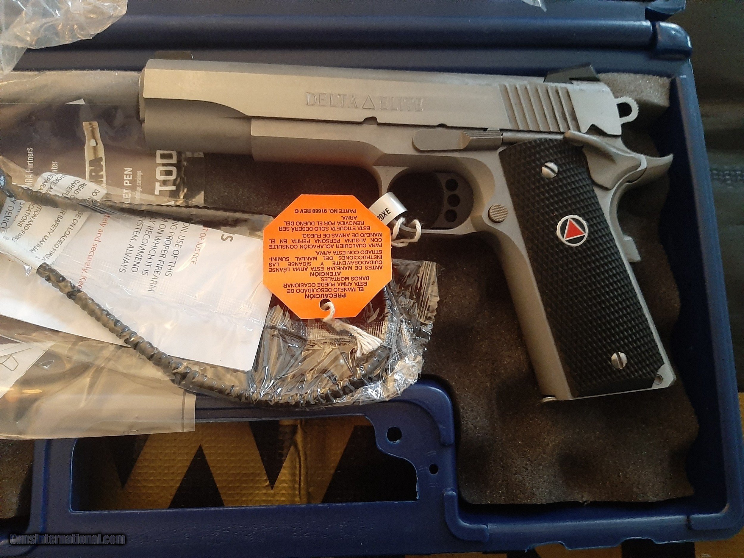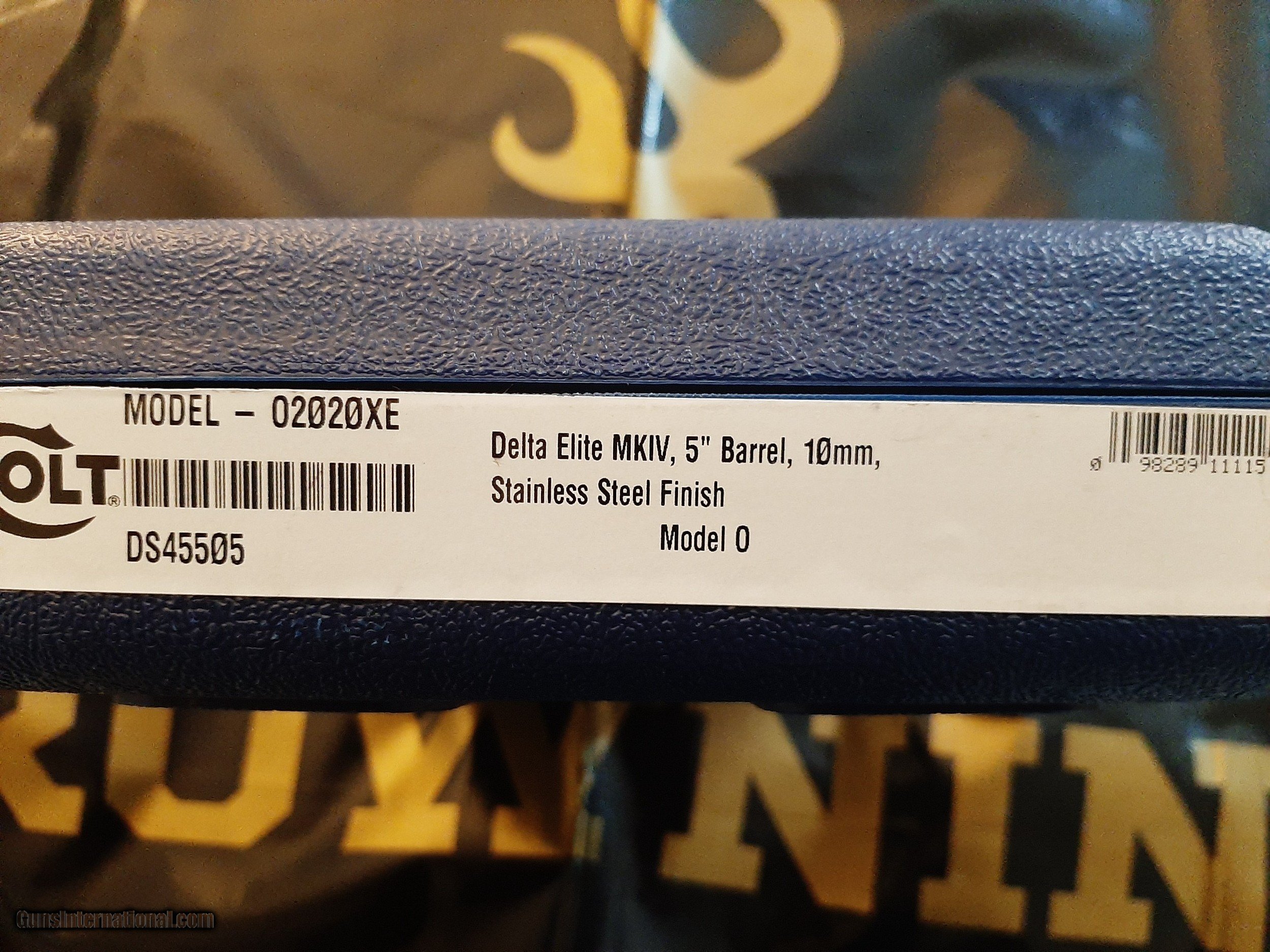 Description: Colt Delta Elite MK IV 10MM that is NIC. Has a 5" Barrel, Stainless. Credit Cards add 3%. Shipping and Insurance is 35.00. SOLD |