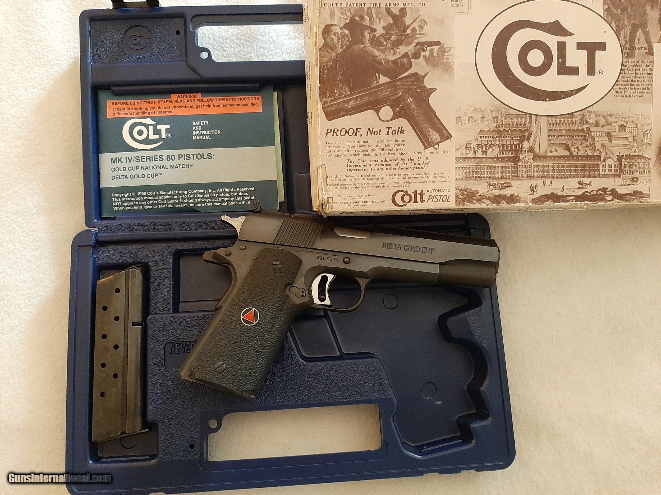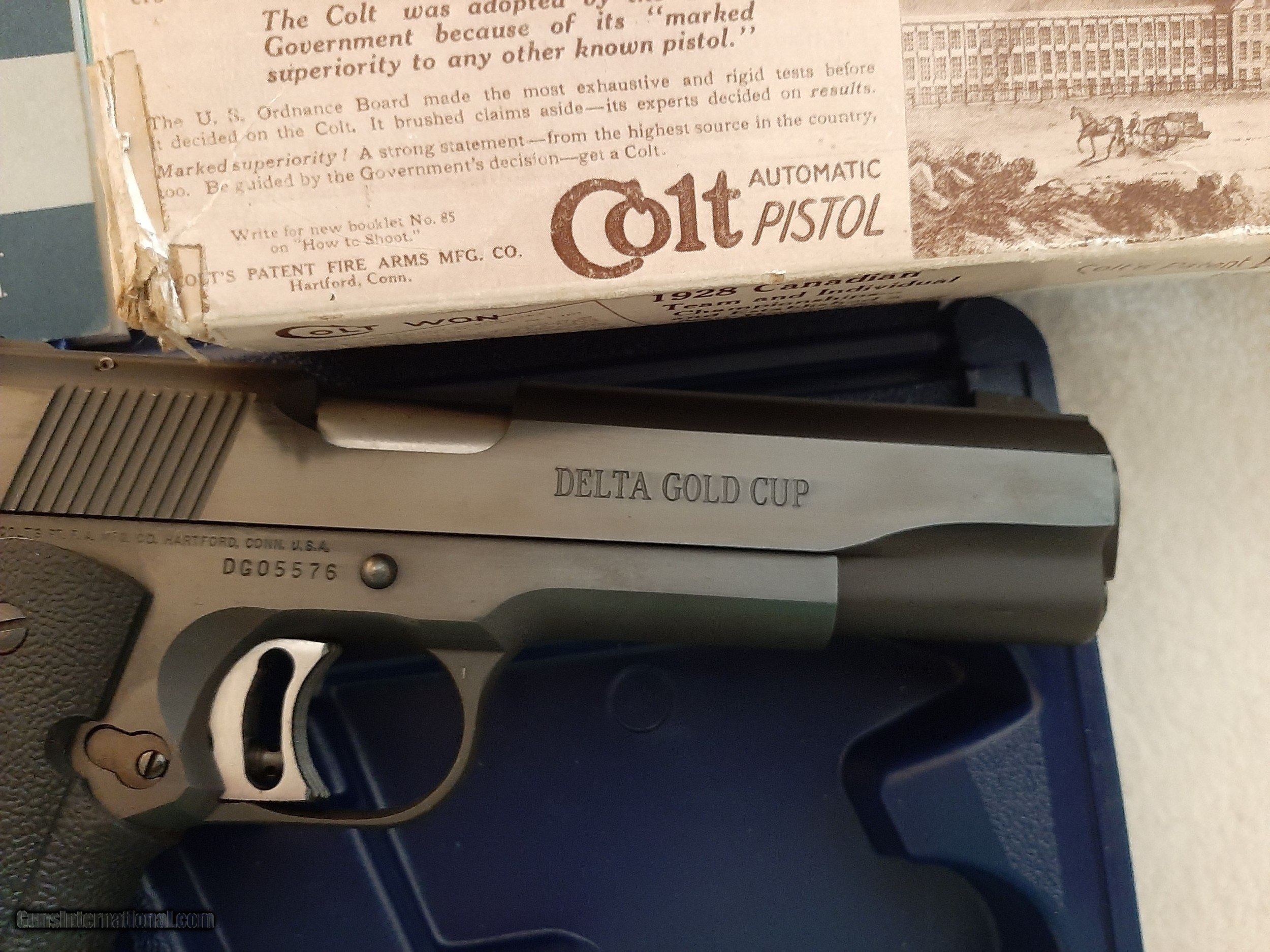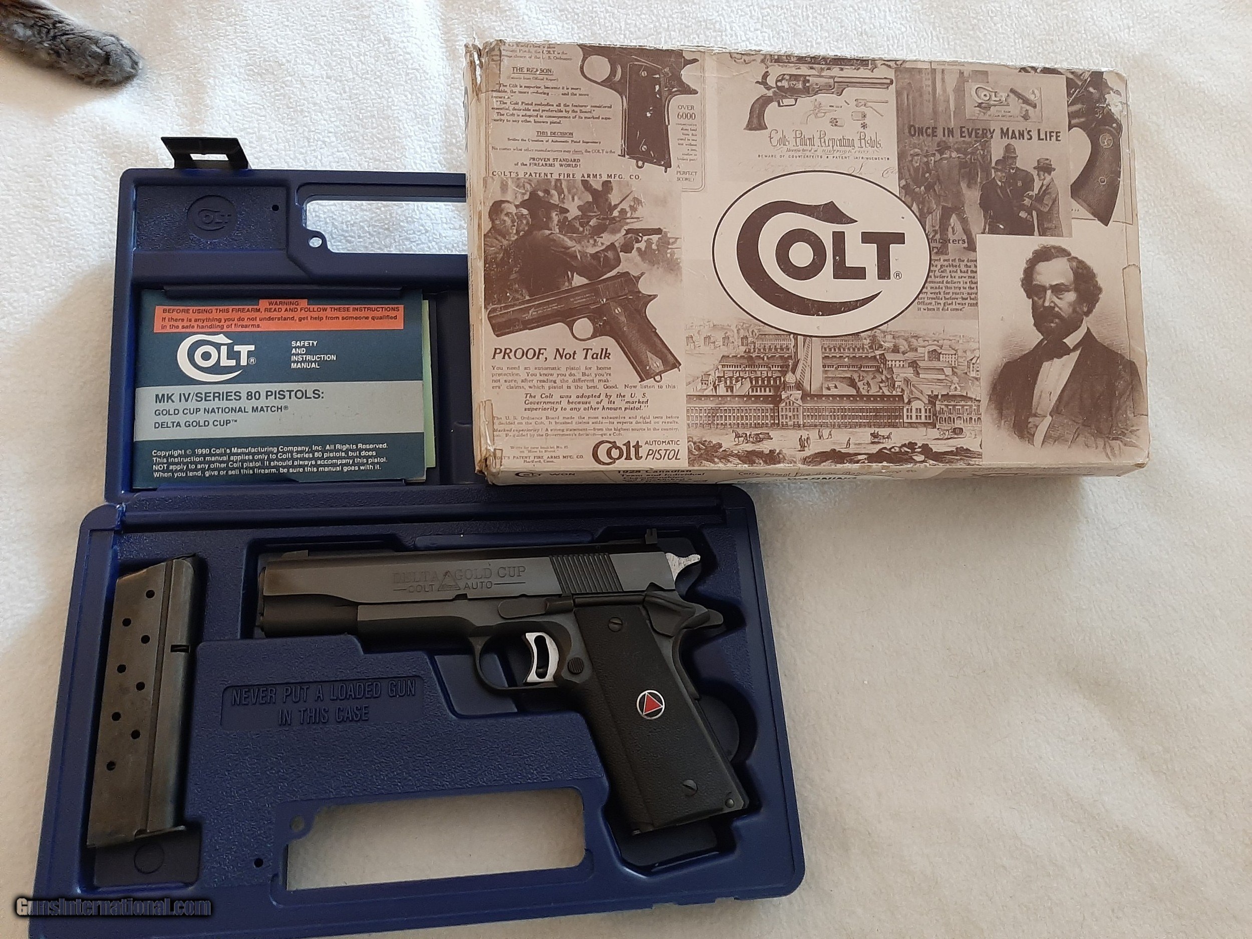 Description: Colt Delta Gold Cup 10MM that is NIB. The Blue Finish was only made in 1991, Limited production numbers. Credit Cards add 3%. Shipping and Insurance is 35.00. SOLD |