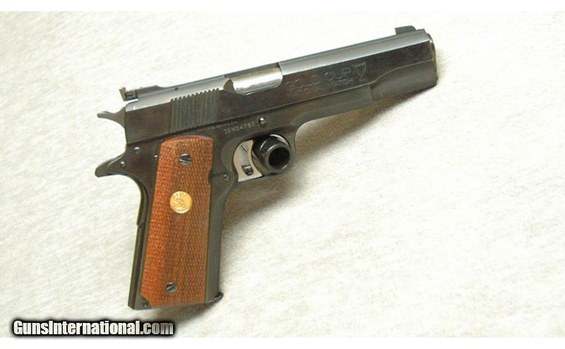 Description: Colt MK IV Series 70 Gold Cup National Match Pistol. Excellent condition, 5" barrel. adjustable trigger and sights, factory wood grips. A good choice for target practice or handgun competitions. Manufactured in 1976, with one mag, original box and paper. .45 Auto SOLD Chambers: Semi auto Metal Condition: Excellent Wood Condition: Grips are excellent Bore Condition: Bright Barrels: 5 Triggers: Single action Butt Pad: Colt wood grips Sights: Adjustable Item Location: La Vista, NE |