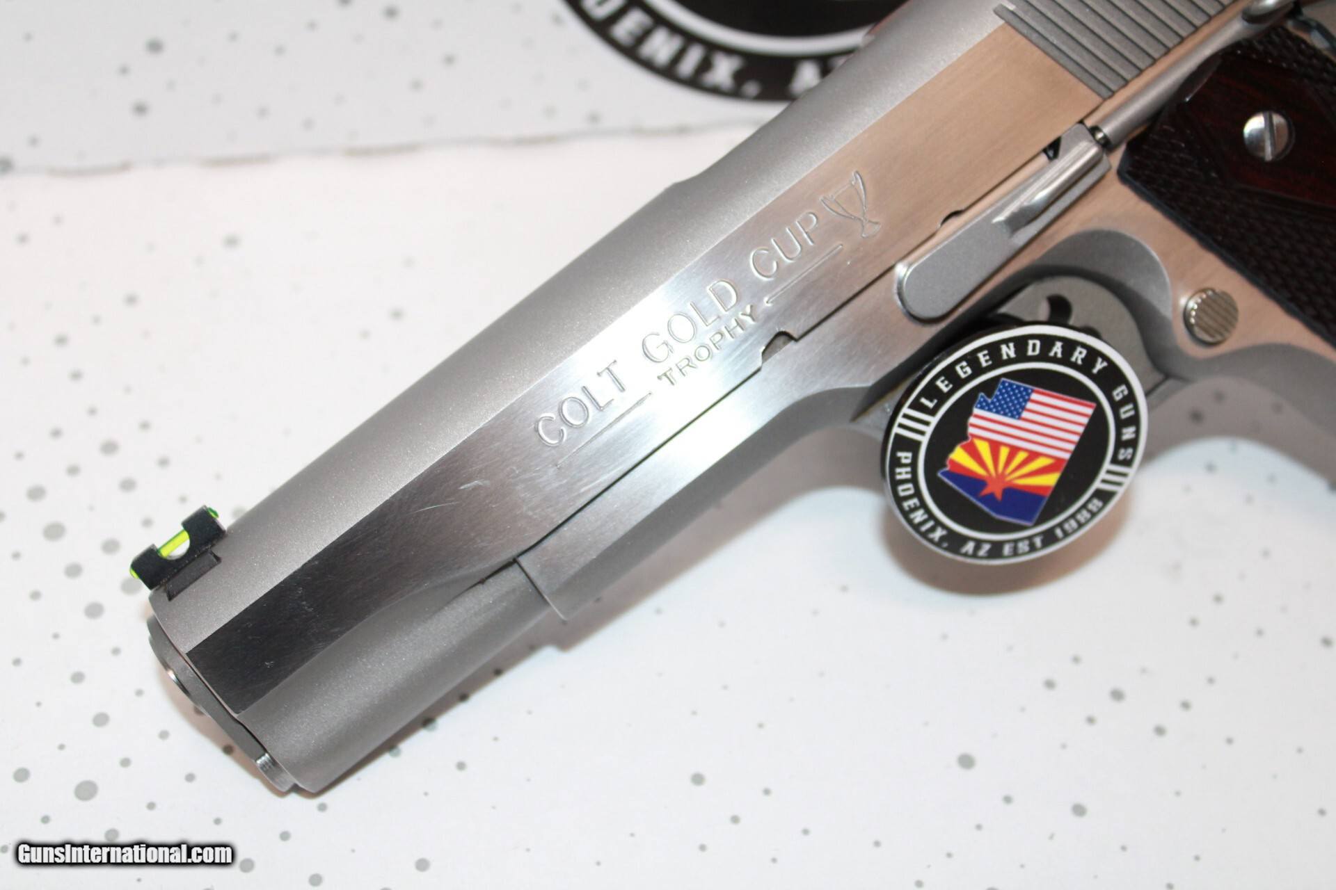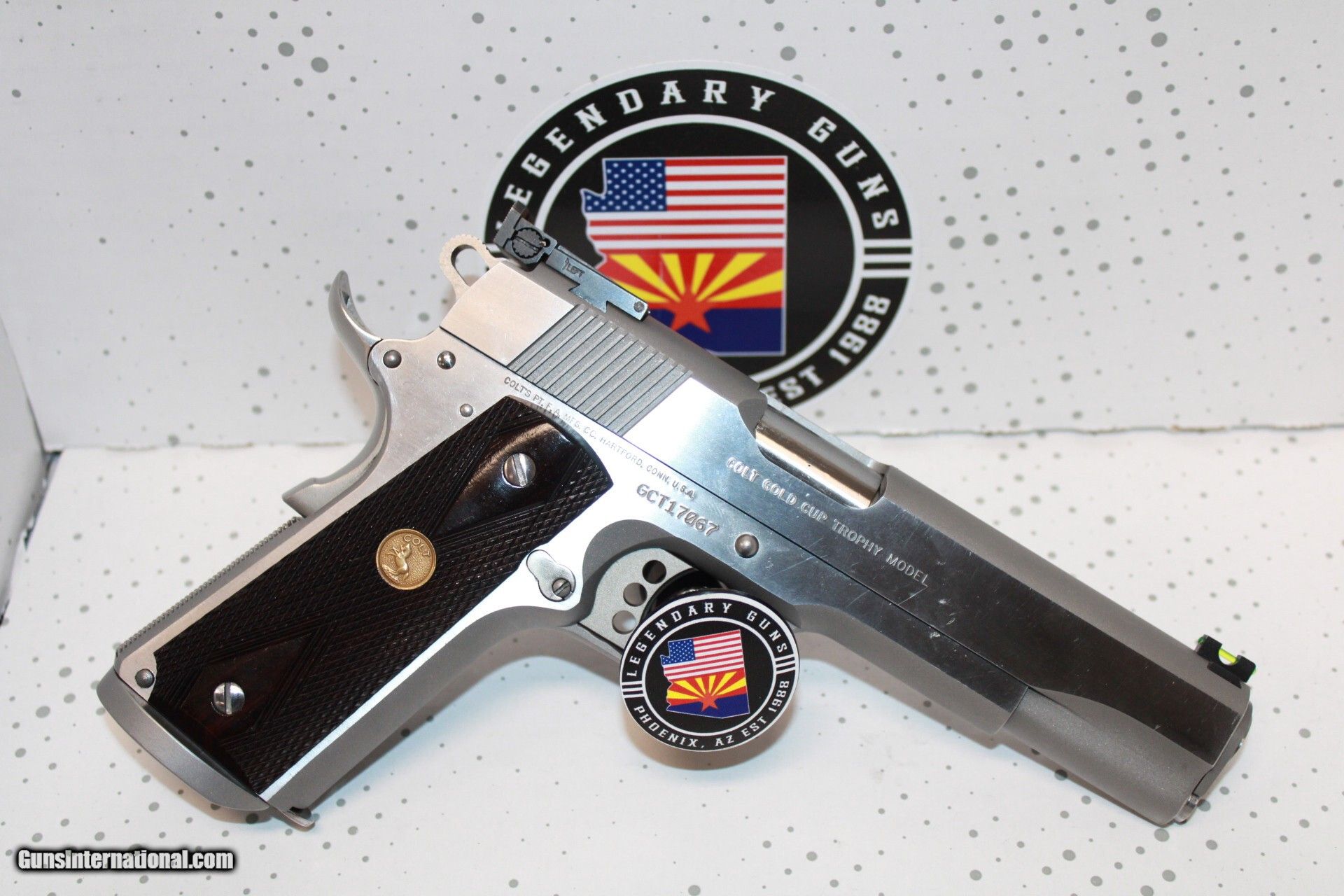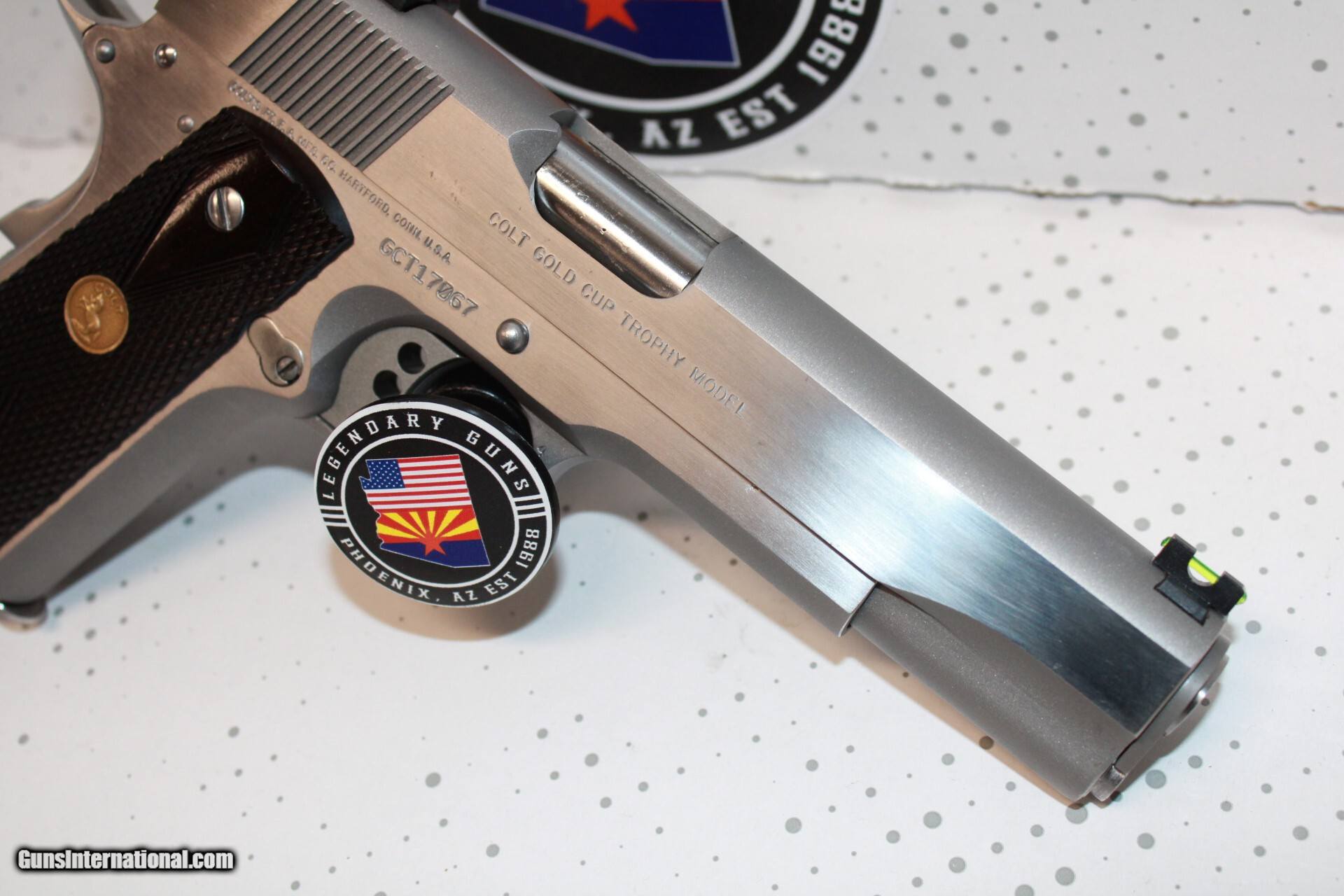 Description: Colt Gold Cup Trophy in 45ACP with a 5" barrel, stainless finish, adj rear sight, flared magwell,wood grips with medallion. Pistol is used in very good condition and comes with 1 mag. *Legendary Guns in Phoenix AZ 602-242-1195 Hours of operation Tuesday-Friday 10-6 Sat 10-5 Closed Sundays & Mondays *We accept all Major credit cards. We DO NOT charge an additional fee for Credit Cards. We also accept Postal Money orders or Certified Bank Checks{Check & Money order payments must arrive within 7 days of initial agreement and will be held for 3 days before items are shipped} *Shipping is $50 for rifles/shotguns {AK & HI Extra} and $35 for handguns. Arizona Residents Must Pay Sales Tax. We DO NOT ship Internationally. *We offer a 60 day layaway on purchases of $500 or more. Items require 1/3 of the total price as down payment which is NON-REFUNDABLE and you have 60 days to pay off the balance. *Please call or email with any questions and to confirm availability before buying. We are happy to answer all questions. All items listed are also for sale at our Phoenix, AZ location *We offer a 3 day inspection period on USED FIREARMS ONLY, We accept returns within the 3 day inspection period with NO REFUNDS ON SHIPPING CHARGES and a 10% restocking fee. *Trades are welcome for customers who can visit our Phoenix, AZ location, We DO NOT engage in online or mail in trades. Handgun Caliber: .45 ACP (.45 Auto) Manufacturer: Colt Model: 1911 Condition: Pre Owned Price: $1,299.00 Shipping: $35.00 Contact Seller |