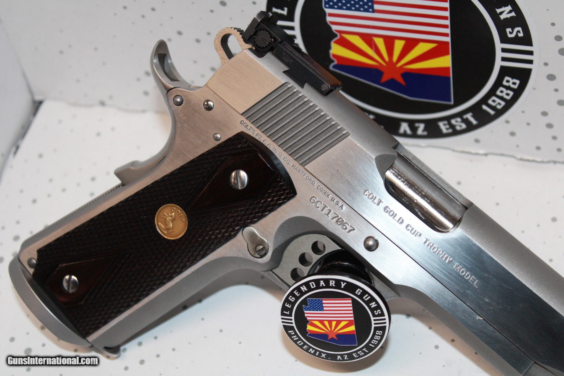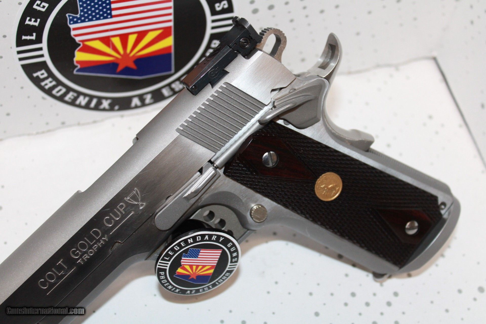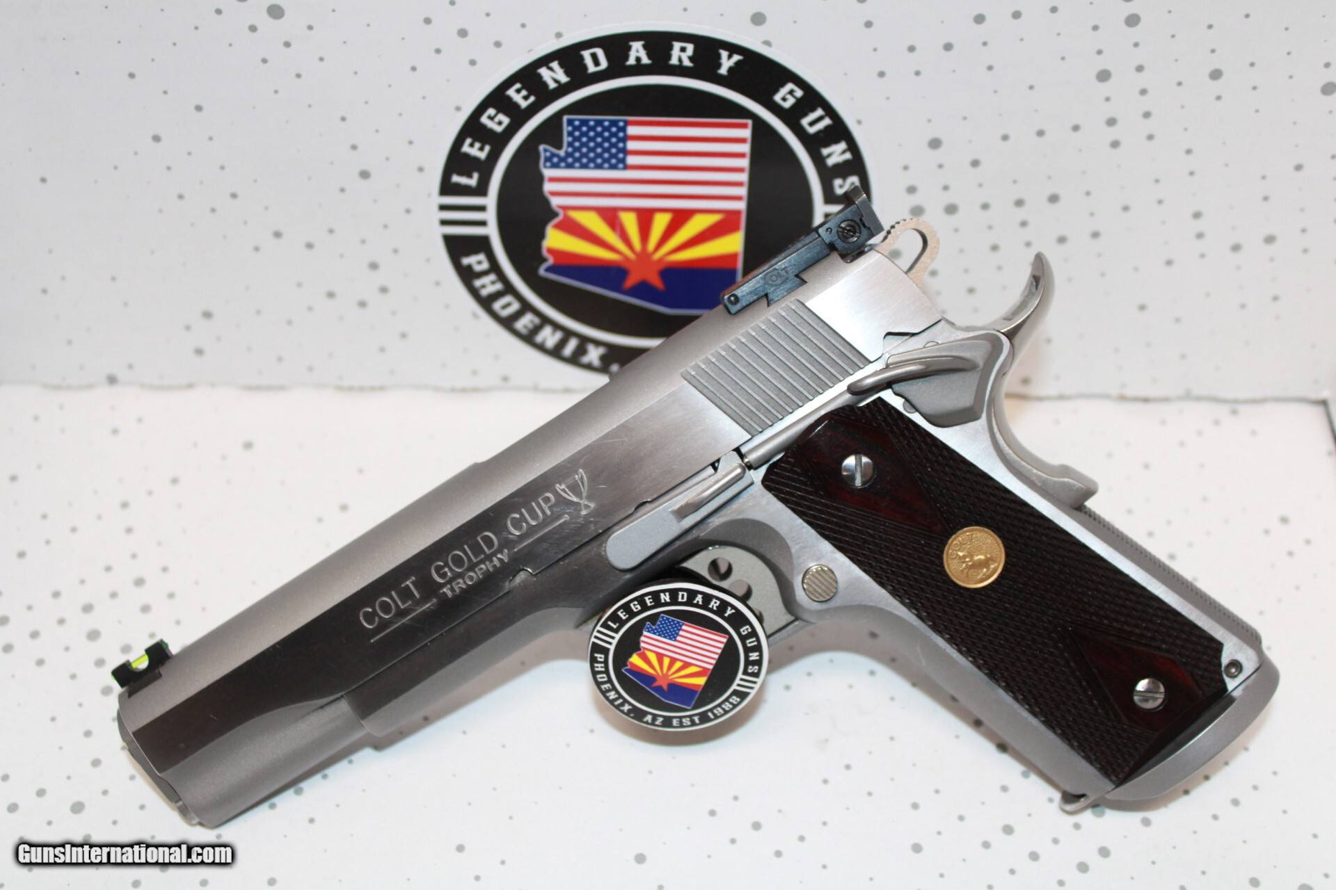 Description: Colt Gold Cup Trophy in 45ACP with a 5" barrel, stainless finish, adj rear sight, flared magwell,wood grips with medallion. Pistol is used in very good condition and comes with 1 mag. *Legendary Guns in Phoenix AZ 602-242-1195 Hours of operation Tuesday-Friday 10-6 Sat 10-5 Closed Sundays & Mondays *We accept all Major credit cards. We DO NOT charge an additional fee for Credit Cards. We also accept Postal Money orders or Certified Bank Checks{Check & Money order payments must arrive within 7 days of initial agreement and will be held for 3 days before items are shipped} *Shipping is $50 for rifles/shotguns {AK & HI Extra} and $35 for handguns. Arizona Residents Must Pay Sales Tax. We DO NOT ship Internationally. *We offer a 60 day layaway on purchases of $500 or more. Items require 1/3 of the total price as down payment which is NON-REFUNDABLE and you have 60 days to pay off the balance. *Please call or email with any questions and to confirm availability before buying. We are happy to answer all questions. All items listed are also for sale at our Phoenix, AZ location *We offer a 3 day inspection period on USED FIREARMS ONLY, We accept returns within the 3 day inspection period with NO REFUNDS ON SHIPPING CHARGES and a 10% restocking fee. *Trades are welcome for customers who can visit our Phoenix, AZ location, We DO NOT engage in online or mail in trades. Handgun Caliber: .45 ACP (.45 Auto) Manufacturer: Colt Model: 1911 Condition: Pre Owned Price: $1,299.00 Shipping: $35.00 Contact Seller |