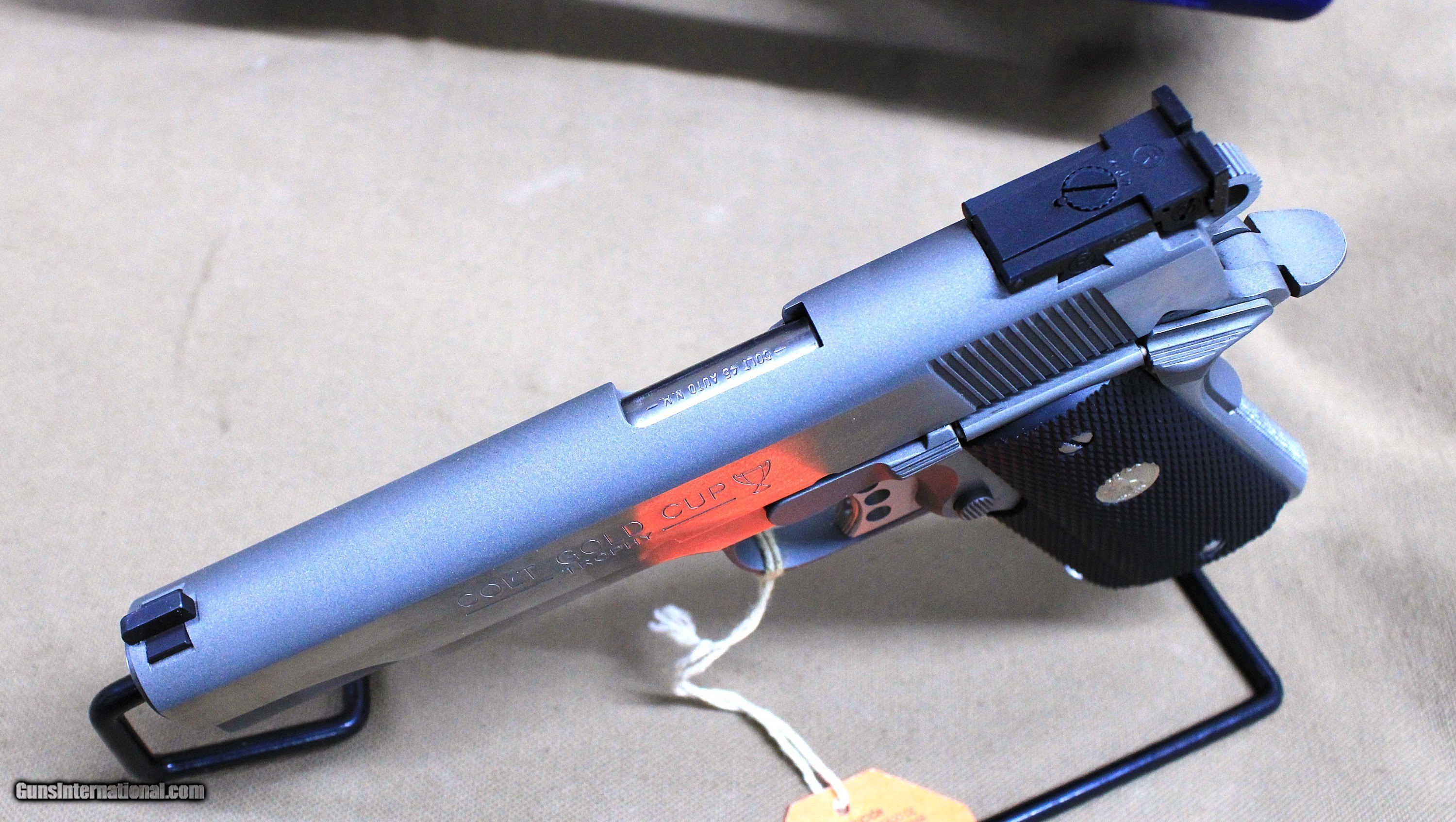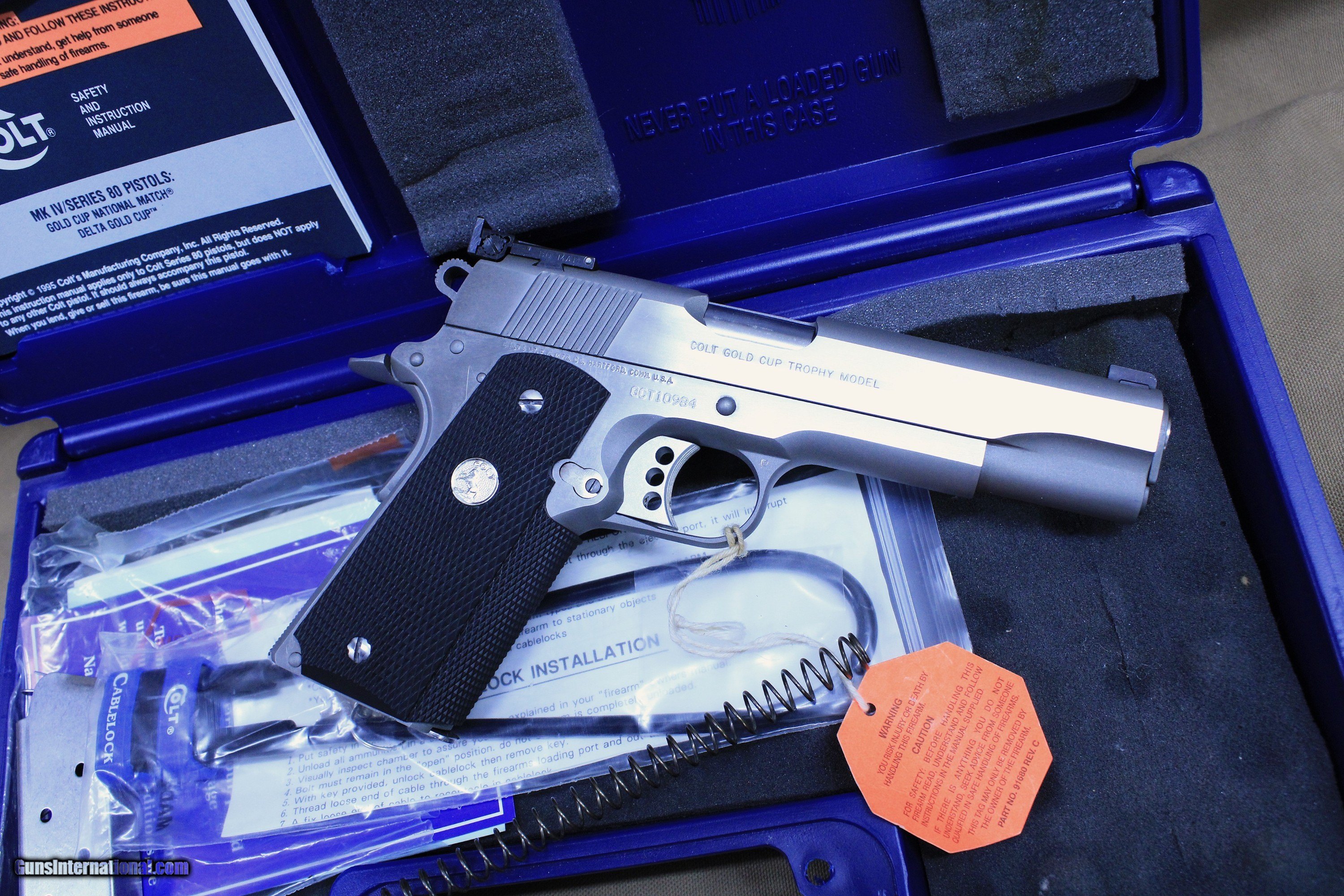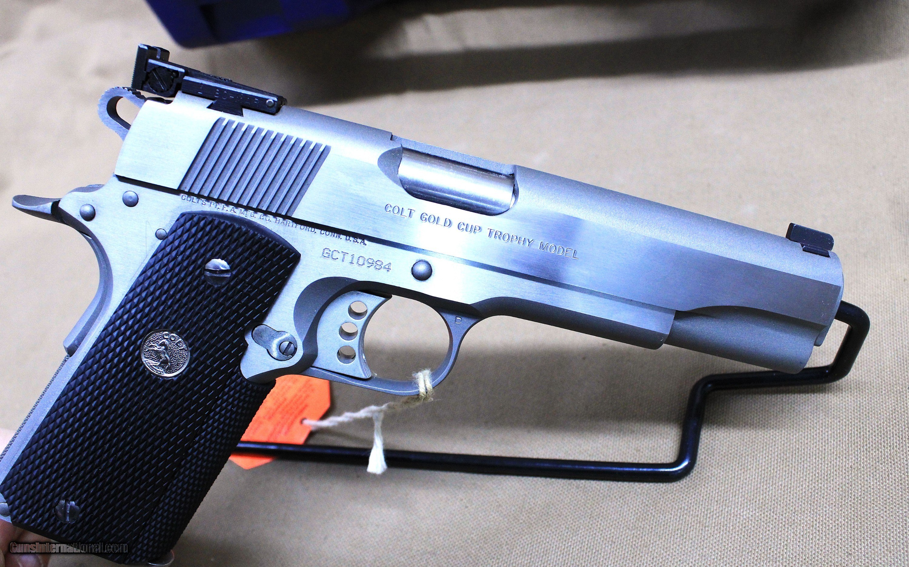 Description: This is a New, Colt Gold Cup Trophy model - made in 2002 - been in the safe since purchased. It has the Bomar rear sights, solid front sight - not the plastic glow. It has the beavertail grip, checkered back strap, beveled mag well - comes with 2 mags, extra recoil spring, all factory paperwork. ***** This Must ship to a FFL for transfer - Please know your local laws . shipping includes full insurance. Consignment firearm - Check or certified funds - ***** Thank you Handgun Caliber: .45 ACP (.45 Auto) Manufacturer: Colt Model: 1911 Serial Number: GCT10984 Barrel Length: 5 Condition: Mint Metal Condition: Mint Bore Condition: Mint Manufacture Date: 2002 Price: $1,575.00 Shipping: $75.00 Contact Seller |