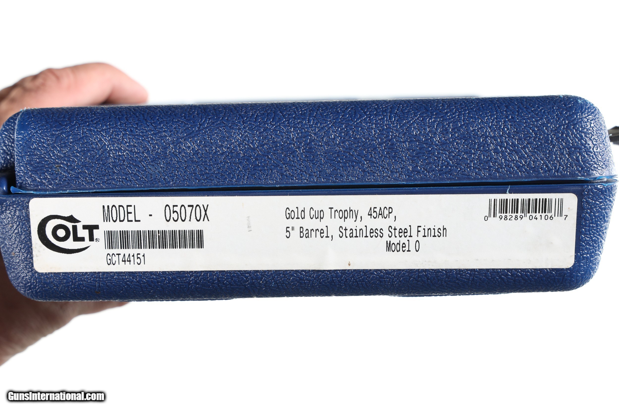 Description: Like new with factory box numbered to gun. • Free Shipping, No Credit Card Fees. • Lay-a-way available for this firearm. • 1/3 Down, a 1/3 in 30 Days 1/3 in 60 Days. SOLD Manufacturer: Colt Model: Gold Cup Trophy Serial Number: GCT44151 Barrel Length: 5 |