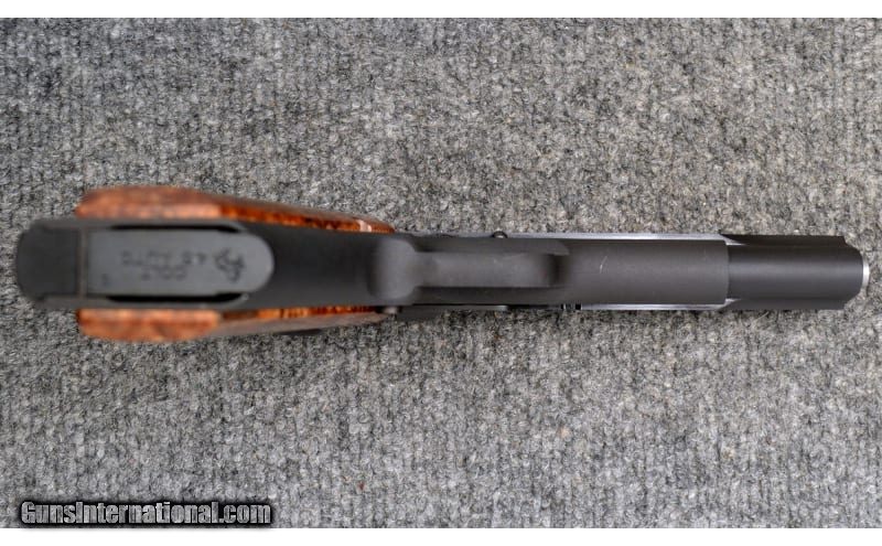 Description: For your consideration, a Colt Government model chambered in .45 Auto. A product of the Colt Custom Shop, this piece is a Premier Grade Limited Edition. As such, it features burl grips, ambidextrous thumb safety levers, a full-length guiderod, and roll-pressed scrollwork with gilded accents. Of 750 such pistols made, this is number 617. .45 Auto SOLD Metal Condition: Excellent Wood Condition: Excellent Bore Condition: Excellent Barrels: 5 Triggers: Serrated Weight: 2.5 lbs Sights: Iron Sights Item Location: Hamburg, PA |