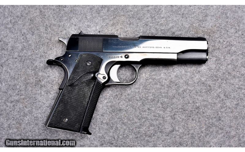 Description: Made in 1966. Has Pachmayr grips on it .45 Auto SOLD Curio/Relic: Yes Metal Condition: Great Bore Condition: Shiny Barrels: 5 inch Weight: 2.5 lbs. Sights: Combat sights Item Location: Reno |