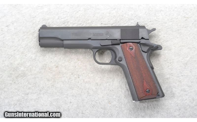 Description: This Colt Government Model is a right hand semi-auto pistol in .38 Super Auto Cal. It has a 5 inch barrel with a rear serrated slide. A blade front sight and notch rear sight. The grip panels are a diamond checkered walnut. .38 Super SOLD Chambers: 8 round magazine. Metal Condition: Excellent. Wood Condition: Excellent. Bore Condition: Excellent. Barrels: 5 inch barrel with a rear serrated slide. Weight: 42 oz. Sights: Blade front. Notch rear. Item Location: Richfield, WI |
