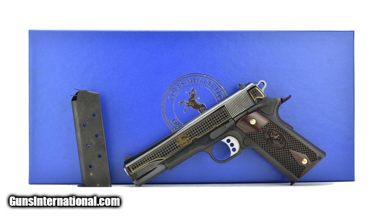 Colt Government .45 ACP caliber pistol. Talo “Sovereign” edition with fancy etching. Excellent condition with box.