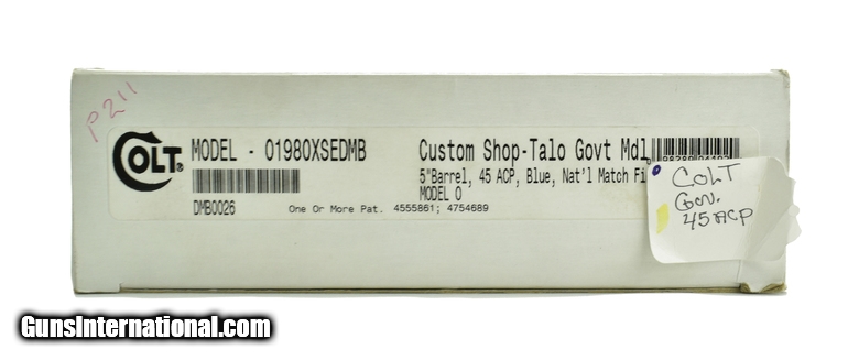 Description: Colt Government .45 ACP caliber pistol. Talo “Sovereign” edition with fancy etching. Excellent condition with box.