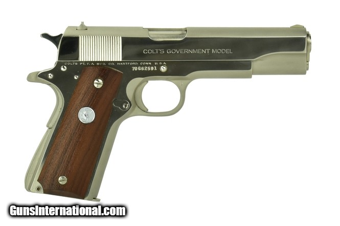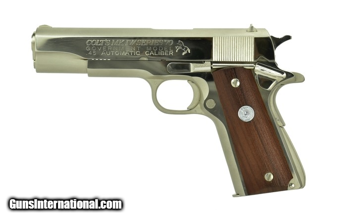Description: Colt Government .45 ACP caliber pistol. Original Series 70 made in 1973 with scarce nickel finish. Near excellent condition with box.