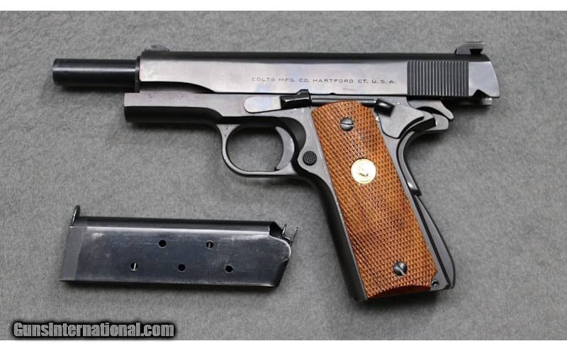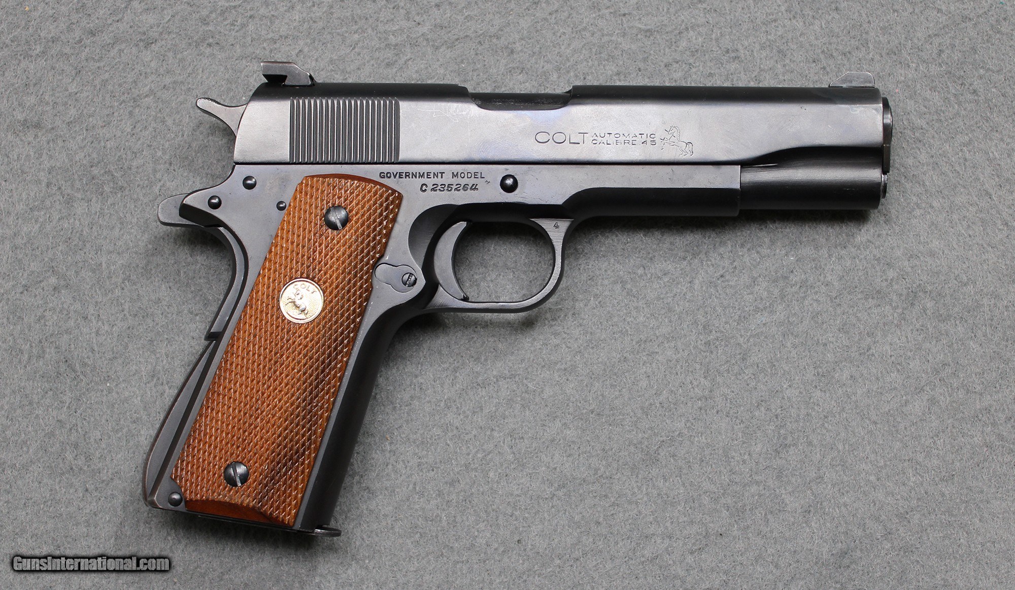 Description: This Colt Government semiautomatic pistol is chambered in .45 ACP. This firearm features a 4" barrel, walnut grips with checkering, and comes with one (1) 7 round magazine. Pistol only; No box, No accessoies. .45 ACP SOLD Metal Condition: Very Good with Minor Handling Marks Wood Condition: Very Good with Minor Handling Marks Bore Condition: Bright And Clear with No Pitting Barrels: 4 Inches Item Location: Fort Worth, TX |