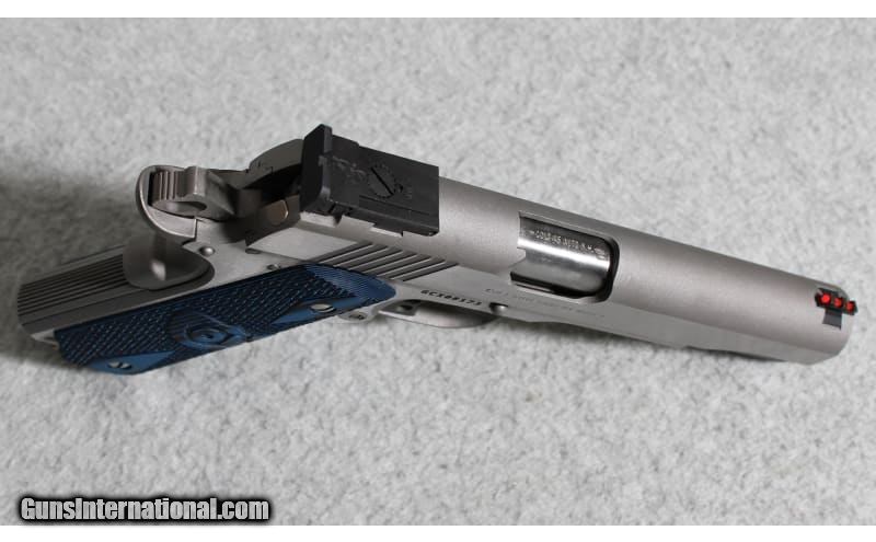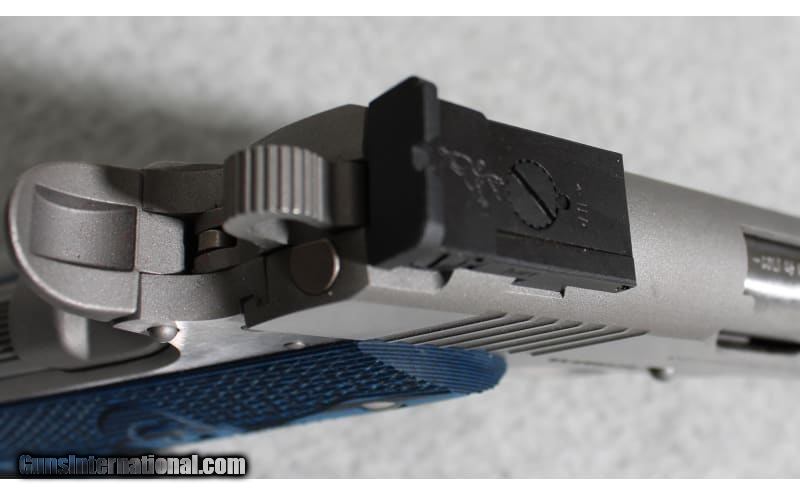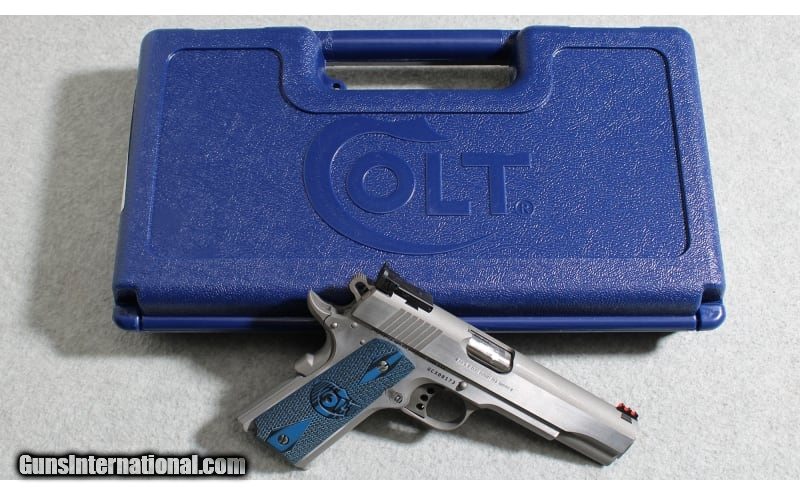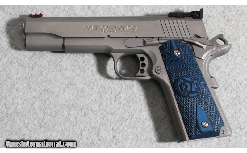 Description: This Colt Government Gold Cup Trophy handgun is chambered in .45 Auto with a stainless-steel finish. Its unique blue grip give it a look that stands out from the crowd. This used pistol comes with its original blue plastic COLT case. .45 Auto SOLD Metal Condition: Excellent with Minor Handling Marks Wood Condition: Excellent with Minor Wear Bore Condition: Bright and Clear with Good Rifling Barrels: 5 inch Triggers: SAO Butt Pad: Colt competition blue G10 grips Weight: 2 lb 8 oz Sights: Adjustable rear/fiber optic red forward sights Item Location: Fort Worth, TX |
