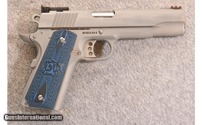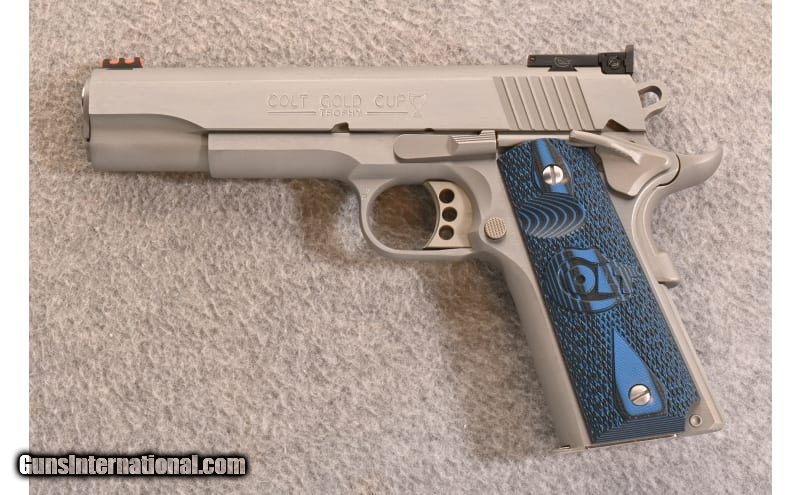 Description: A Colt Gold Cup Trophy Government .45 auto with a 5 inch barrel in stainless. .45 Auto SOLD Metal Condition: Excellent with light wear Wood Condition: Excellent with light wear Bore Condition: Bright and Shiny Barrels: 5 inches Triggers: Single action auto Weight: 2 lbs 8 oz Sights: "Fibre optic front, adjustable rear notch (Bomar) Item Location: Gonzales, LA |