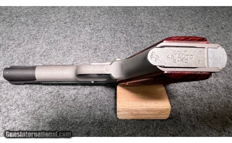 Description: This full size 1911 single action trigger fired semi-auto pistol is a Colt Combat Elite (Government Model) chambered in .45 Auto. It has a high undercut below the trigger guard to allow for a high grip on the gun. The Novak LoMount tritium night sights, which are dovetailed into the slide and drift-adjustable for windage are highly-visible and not prone to snagging on clothing or slicing skin. It has a dual recoil spring arrangement that reduces felt recoil and extends spring life. Colt National Match barrels have oversized lower lugs that eliminate play (barrel squat). The slide is built from stainless steel and then finished in a matte-black Ionbond™. Ionbond™ is a Physical Vapor Deposition (PVD) coating that is regarded for its wear and friction resistance. Unlike other finishes on the market, Ionbond™ is also incredibly thin, so it is suited for guns built with tight clearances. Once finished, the flats of the frame, slide and hammer are sanded, which reveals the stainless steel grains underneath and creates a two-tone look. The internal working surfaces of the guns remain coated, which is a good thing. The metal condition on this pistol is in near perfect condition and the checkered/smooth wood grips are in excellent condition showing no discernable handling wear or marks. If you're the discerning individual who requires only the Finest in Quality Materials, Design, and Craftsmanship, then this Pistol is for you. .45 Auto SOLD Metal Condition: The metal finish is in near perfect condition Wood Condition: Smooth/checkered wood grips are in excellent condition showing no discernable handling wear or marks Bore Condition: Bore is mirror bright and shiny with excellent rifling Barrels: 5" Colt National Match stainless barrel Triggers: The trigger is a smooth aluminum three-hole style with an overtravel adjuster Stock Dimensions: Overall length is 8½ Fore End: Full-length guide rod setup Butt Pad: The magazine well is slightly beveled Weight: 2 lbs 4 ozs Sights: "Novak's LoMount tritium night sights, which are dovetailed into the slide and drift-adjustable for windage Item Location: Wichita, KS |