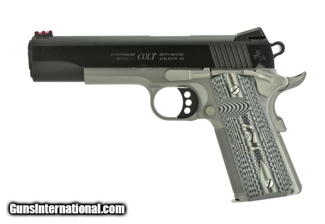 Description: Colt Government Competition Series .45 ACP caliber pistol. Two-tone Competition Series model with red fiber optic front sight. New.