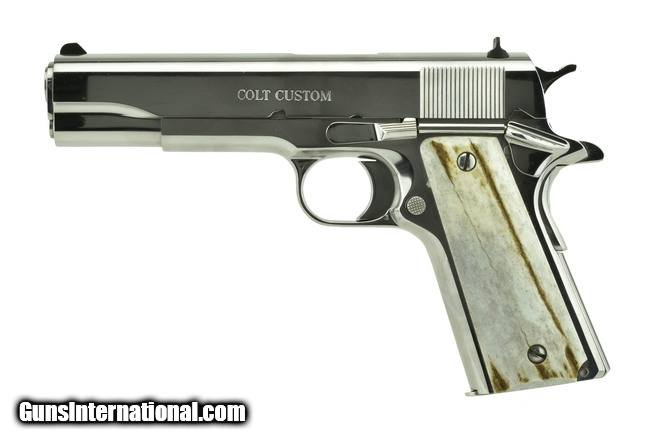 Description: Colt Government Custom 38 Super Caliber Pistol. Bright Stainless model with stag grips. Excellent condition.