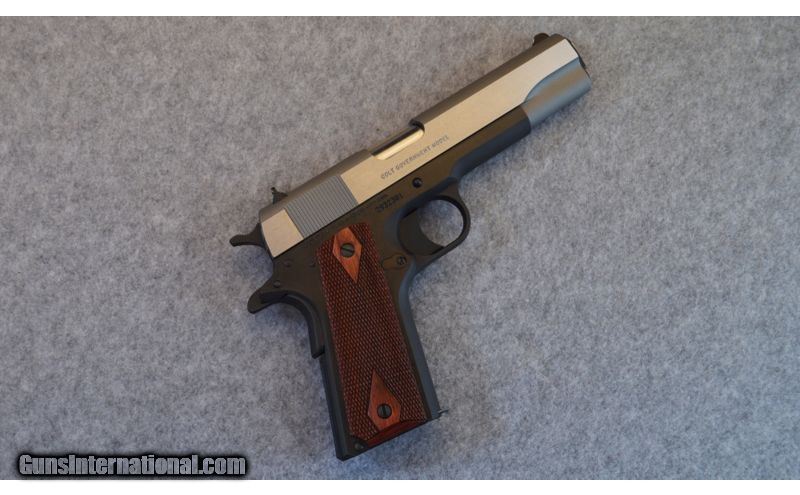 Description: Colt Government in 45 Auto SOLD Manufacturer: Serial Number 2932301 Caliber Info: 45 Auto Metal Condition: Great Condition Bore Condition: Great Rifling Barrels: 5" Stainless Steel Triggers: S/A Stock: Double Diamond Checkered Rosewood Grips Stock Dimensions: 8.5" Blue Steel Fore End: Slide is Matte Stainless Weight: 2.3 lb Sights: Fixed Front and Rear Sights Extras: Factory case and 2 magazines. Item Location: League City, TX |