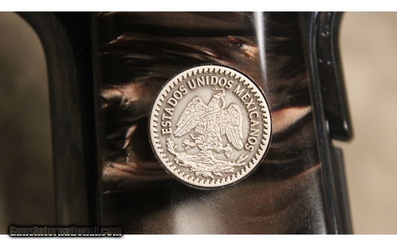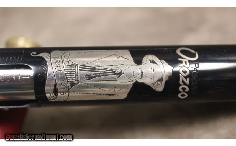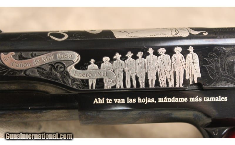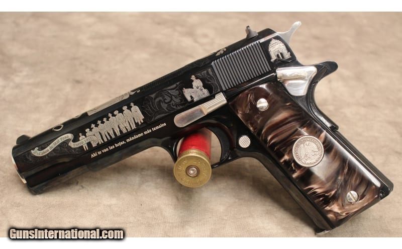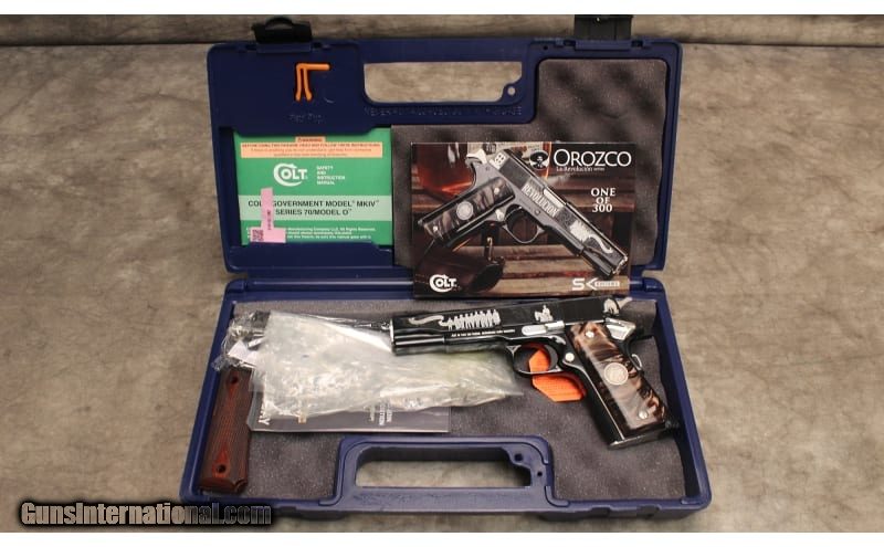 Description: The Orozco Colt 1911 is the third production in the Mexican "La Revolucion" series. To pay tribute to revolutionary leader Pascual Orozco, SK Customs introduced a limited run of only 300 Colt Government Models chambered in 38 Super. Each pistol features high polished blue finish, Cannas Lilly scroll engraving and silver inlays. New in Colt Factory Box. .38 Super SOLD Wood Condition: New in box Bore Condition: New in box Barrels: 5 Weight: 2LBS Sights: Factory Item Location: Broken Arrow, OK |