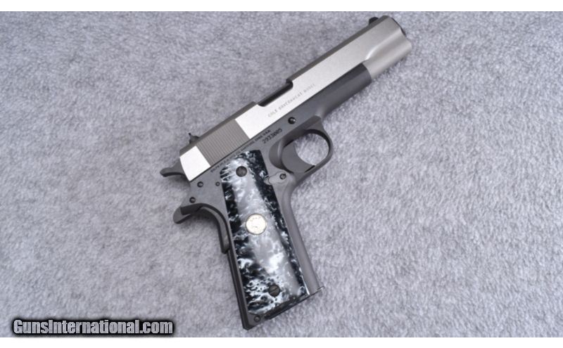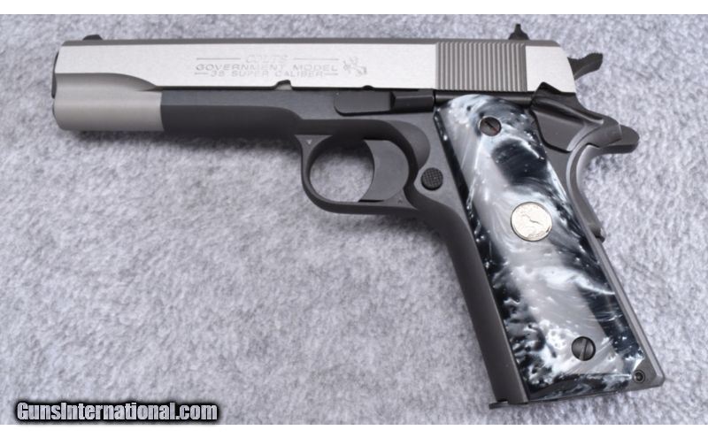 Description: Blued frame with stainless slide. As new throughout complete with case. SOLD Manufacturer: S/N 293XXXX Caliber Info: .38 Super Metal Condition: As New Wood Condition: As New Bore Condition: As New Barrels: 5 Triggers: Factory Stock: Black & Grey Synthetic Grips with Colt Medallions Weight: 40 OZ Sights: Ramp Front - Notch Rear - Three Dot System Item Location: Wheeling, WV |