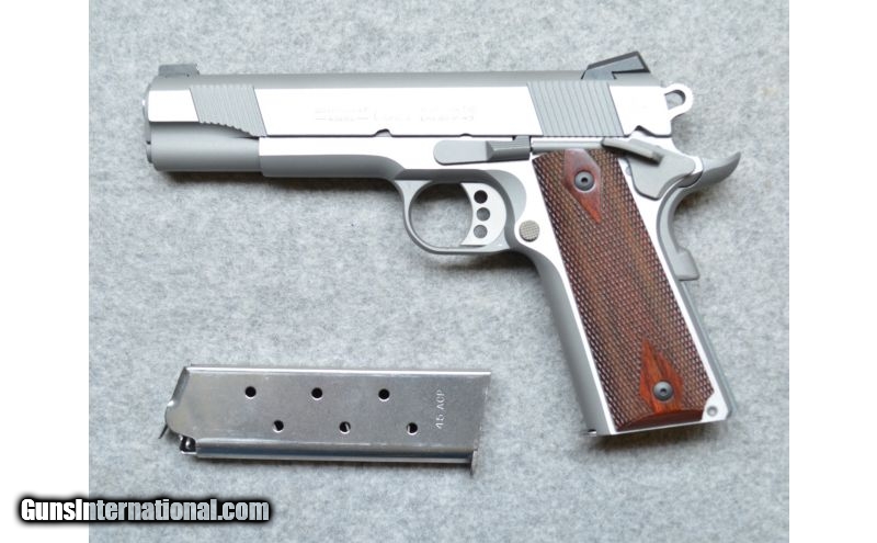 Description: SOLD Manufacturer: SN:SS40808E Caliber Info: 45 ACP Metal Condition: Excellent. Wood Condition: Excellent. Bore Condition: Bright And Shiny, With Good Rifling Barrels: 5" barrel. Triggers: Single Action Stock: Checkered Wood Grips Weight: 2 lbs. 6 ozs. Sights: 3 Dot Sight System Extras: With Case And Extra Magazine. Item Location: Hazelwood, MO |