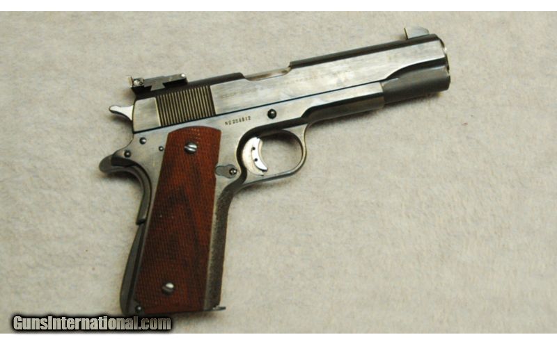 Description: Colt Government Model Pistol .45 ACP. Excellent condition. Classic Colt 1911 type pistol, a good choice for target practice or handgun target competitions. SOLD Caliber Info: .45 ACP. Chambers: Semi auto. Metal Condition: Excellent, light finish wear, few small scratches. Wood Condition: Grips are in excellent condition. Bore Condition: Bright. Barrels: 5" Barrel. Triggers: Single action. Stock: Wood grip panels. Weight: 40 Ozs. Sights: Adjustable target sights. Extras: With one mag. Item Location: La Vista, NE |