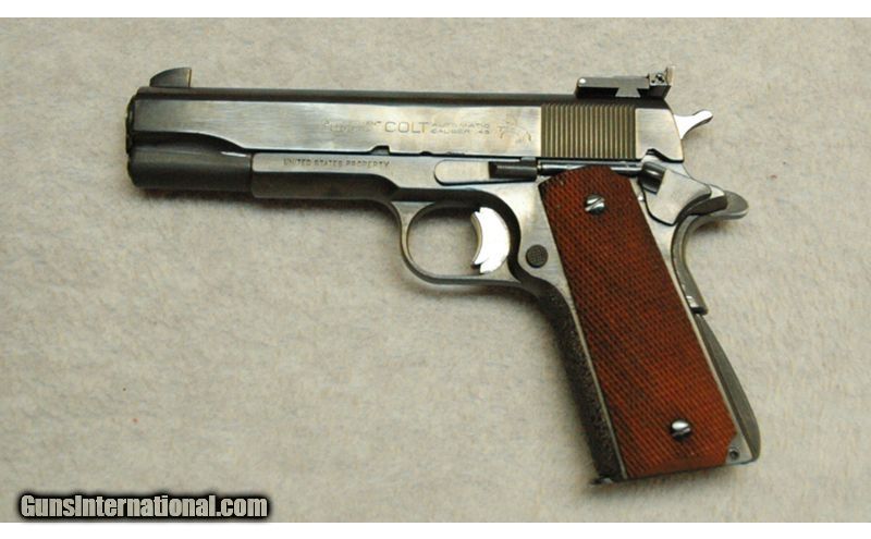 Description: Colt Government ModelPistol .45 ACP. Excellent condition. Classic Colt 1911 type pistol, a good choice for target practice or handgun target competitions. .45 ACP SOLD Chambers: Semi auto. Metal Condition: Excellent, light finish wear, few small scratches. Wood Condition: Grips are in excellent condition. Barrels: 5" Barrel. Triggers: Single action. Sights: Adjustable target sights. Item Location: La Vista, NE |