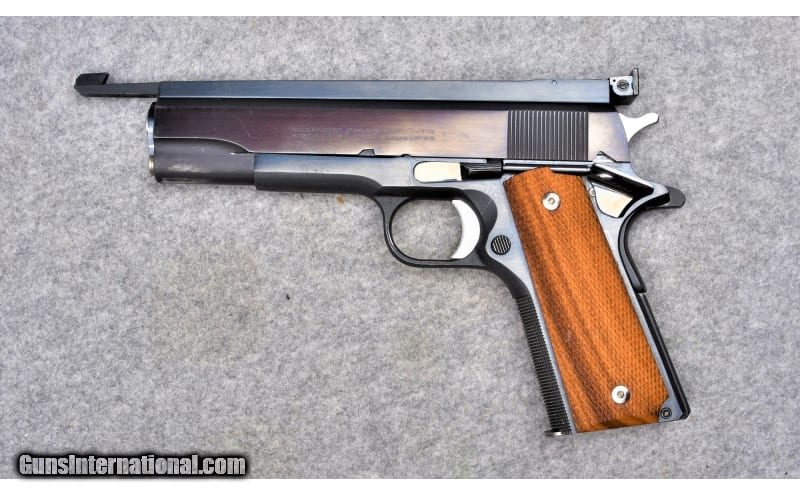 Description: Custom Bullseye Match Competition Work Done by; Smith's Gunsmithing, San Bruno, CA. .45 Auto SOLD Metal Condition: Excellent Wood Condition: Excellent Bore Condition: Bright and Shiny Barrels: Match Triggers: Match Weight: 2.8 lbs. Sights: "Bo-Mar Rib, Target Adjustable Rear Sight, and Patridge Front Sight. Item Location: Reno |