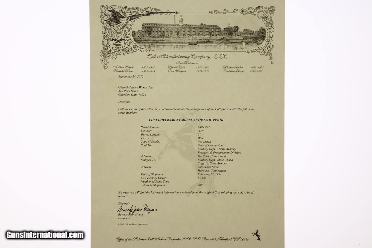 Colt Government Model, Military Shipment, Factory Letter 248450-C, FB02154