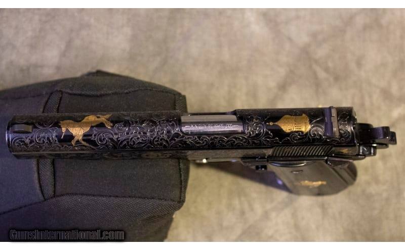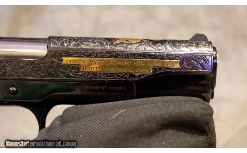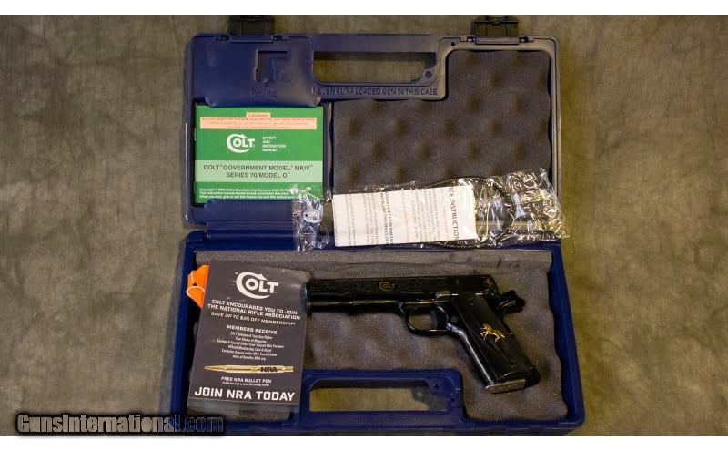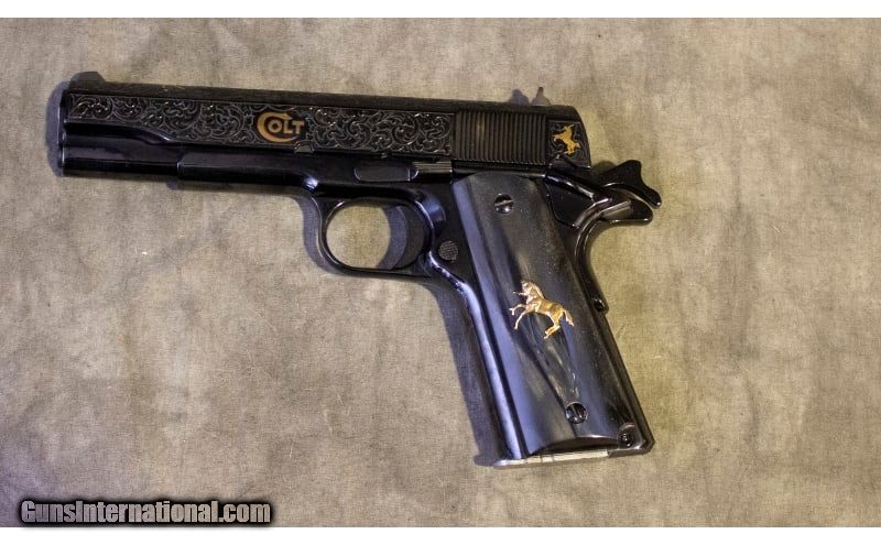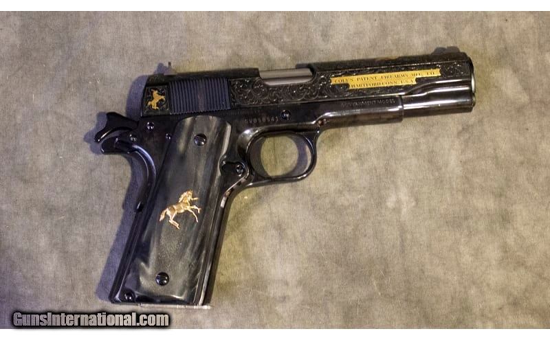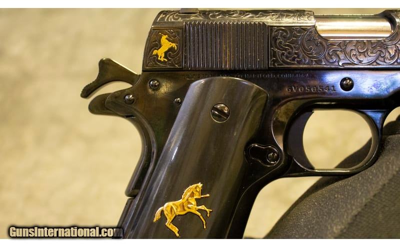 Description: Colt 1911 "Potro Oro" 38 Super Government. Limited to only 500 pieces these Davidson's exclusive 1911s feature specially fitted National Match grade barrels, high polished blue finish with scroll engraved slides. Accenting the pistol are 24k gold-plated Rampant Colts on the top, right and left side of the slide and raised inlays on the Black Pearlite grip panels. Also in gold, an image of the Colt Dome that sat atop the Colt factory since 1855. Very limited availability. New in Factory box. .38 Super SOLD Chambers: .38 Super Metal Condition: New Bore Condition: New Barrels: Match Grade Barrel Weight: 4lbs Item Location: San Antonio, TX |