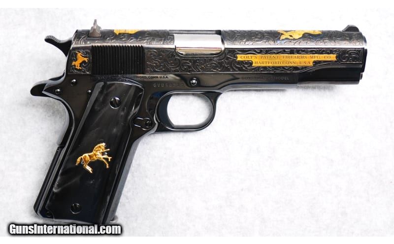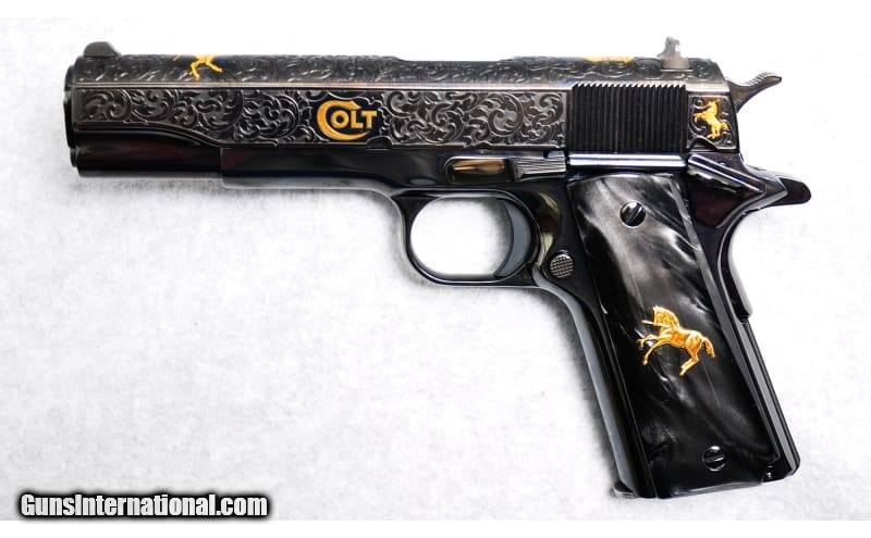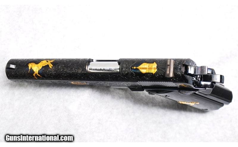 Description: Colt 1911 "Potro Oro" 38 Super Government. Limited to only 500 pieces these Davidson's exclusive 1911s feature specially fitted National Match grade barrels, high polished blue finish with scroll engraved slides. Accenting the pistol are 24k gold-plated Rampant Colts on the top, right and left side of the slide and raised inlays on the Black Pearlite grip panels. Also in gold, an image of the Colt Dome that sat atop the Colt factory since 1855. Very limited availability. New in Factory box. .38 Super SOLD Metal Condition: "High Polished Blue, Scroll Engraving Bore Condition: NEW Barrels: 5" National Match Grade Triggers: Single Action Auto Weight: 36.8 oz Sights: "Dovetailed Rear Sight, Blade Front Item Location: Oklahoma City, OK |