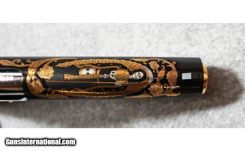 Description: SK Customs is pleased to introduce the second series of the Saints by the roots, a limited-edition production of 500 Colt 1911s chambered in .38 Super. Each pistol will include a special engraved edition number; this one is 217 0f 500. The slide features toned illustrations of roses that believers of Santa Muerte hold particularly sacred. Roses are holy to them because they are associated with the Lady of Guadalupe and because, although beautiful and feminine, they have sharp thorns and will draw blood. Other objects associated with Santa Muerte include scales, an hourglass, an owl and an oil lamp. The scales allude to equity, justice and impartiality, as well as divine will. This symbolic, limited-edition Colt is made complete with Blood Grips made from Kirinte® with the iconic Rampant Colt. .38 Super SOLD Metal Condition: New in Box Bore Condition: Bright And Clear Barrels: 5 inch Triggers: Single Action Weight: 35 oz Sights: Fixed Item Location: Allen, TX |