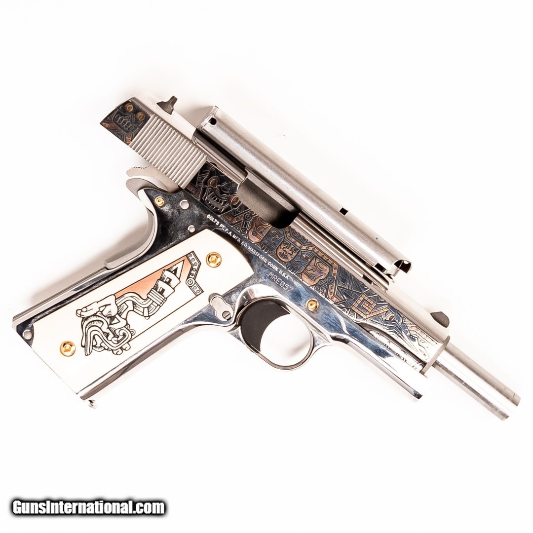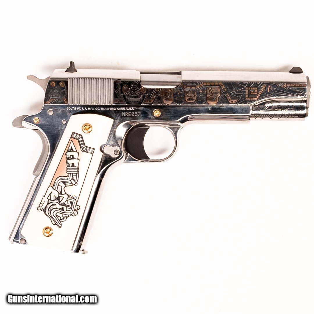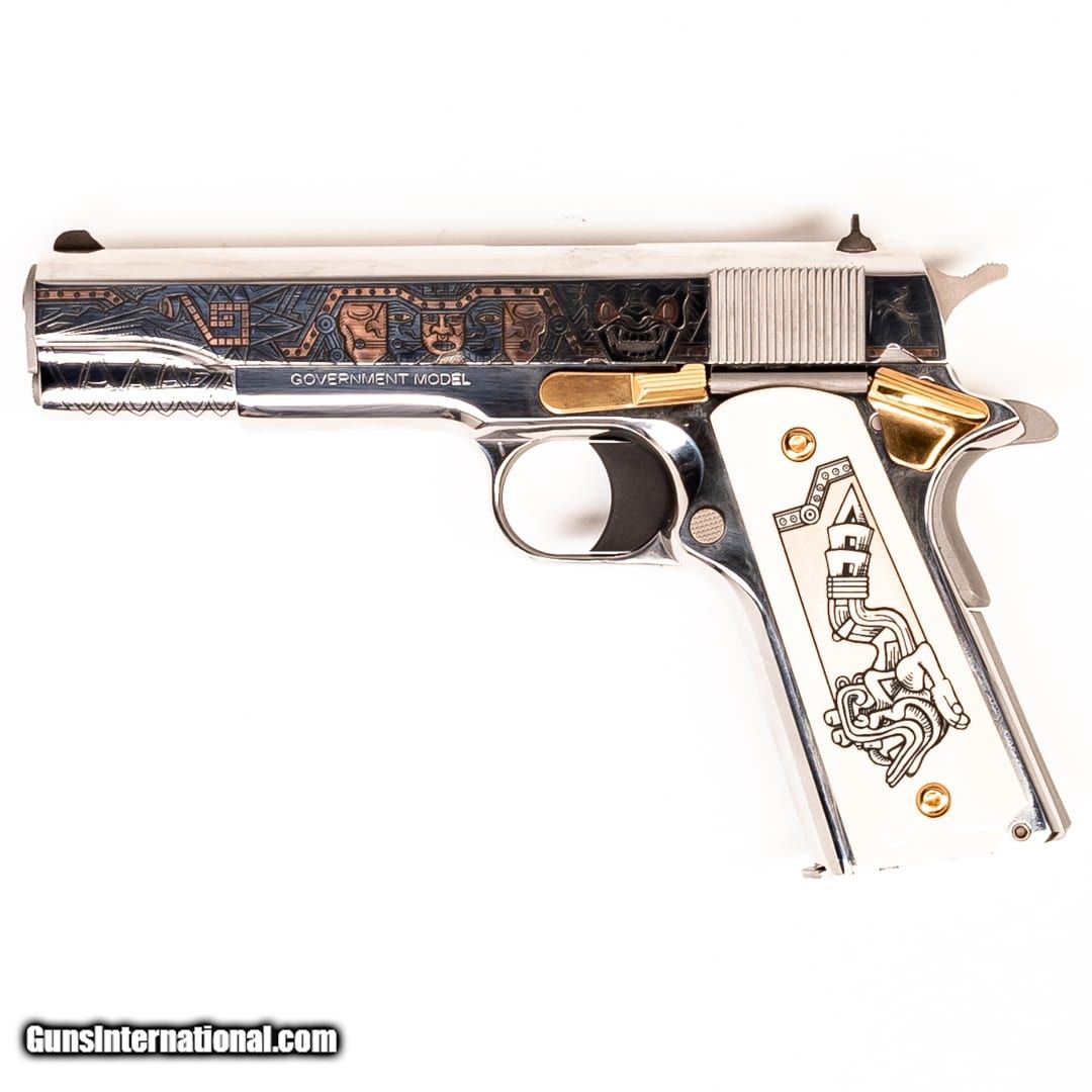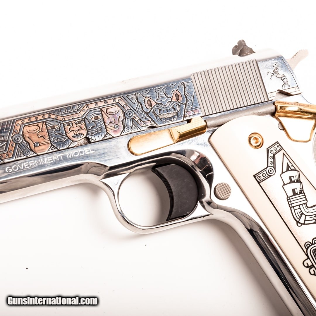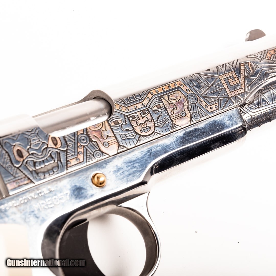 Description: Guns Listing ID: 508315 With well over a century under its belt, John Browning‚‚s legendary design is widely considered the best handgun ever made and is going nowhere anytime soon. The 1911 saw its first combat during the Great War and proved itself time and again to U.S. Military throughout the 20th century. The Government Model 1911 is still in service today and the design is the most copied handguns ever produced. This 1911 Government model bears deep carvings with gold color inlay throughout the design, reminiscent of old South American carvings. This handgun features two 9-round magazines and the original case with the manual SOLD Manufacturer: COLT Model: GOVERNMENT MODEL Caliber Info: .38 SUPER Condition: Used - Certified Barrels: 5 BARREL Finish: CUSTOM |