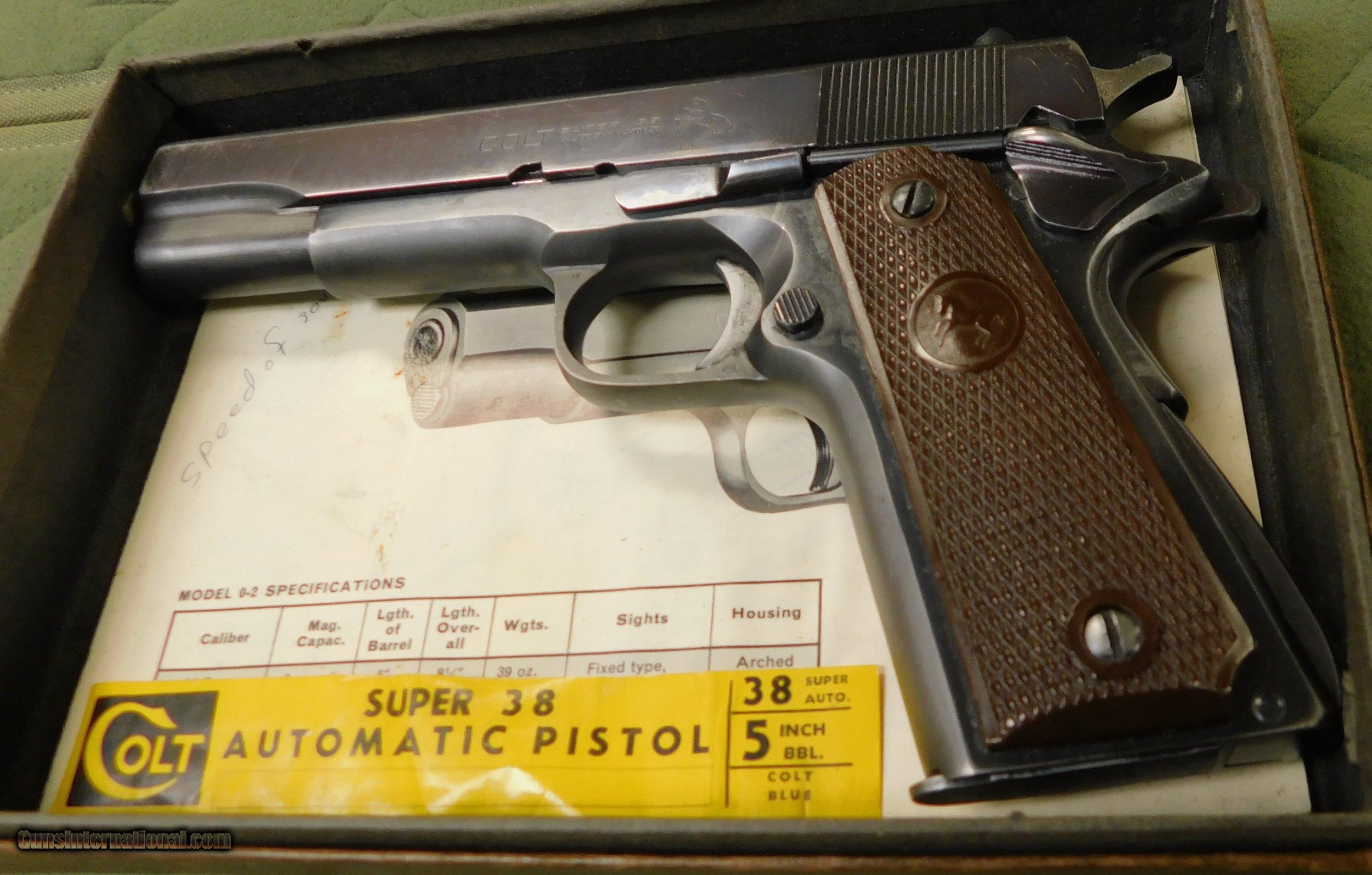 Description: Colt govt model 38 super, mfg 1969, blue finish,w/box,95%. sold SOLD |