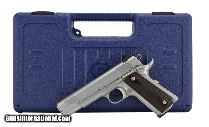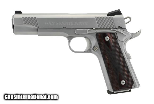 Colt Gunsite Government .45 ACP caliber pistol. Scarce and desirable Gunsite Service Pistol in stainless. Excellent condition with box. Made in 2002.