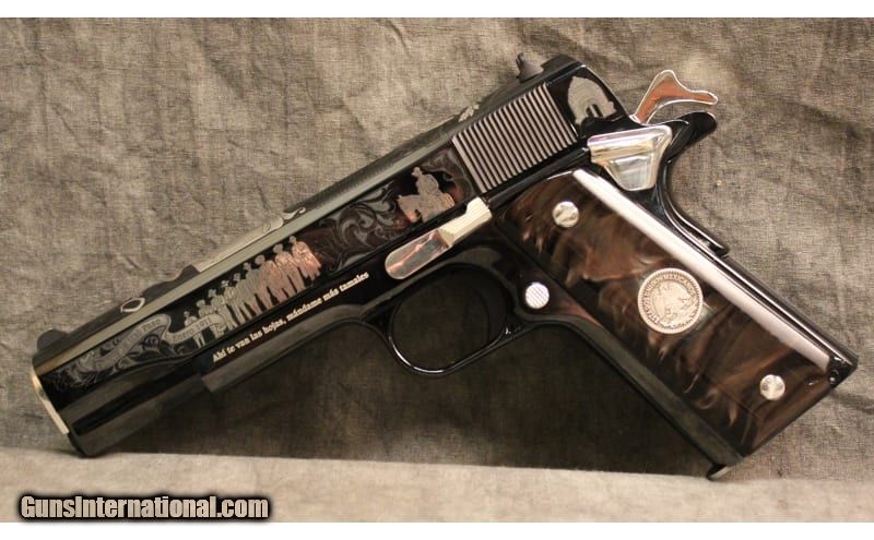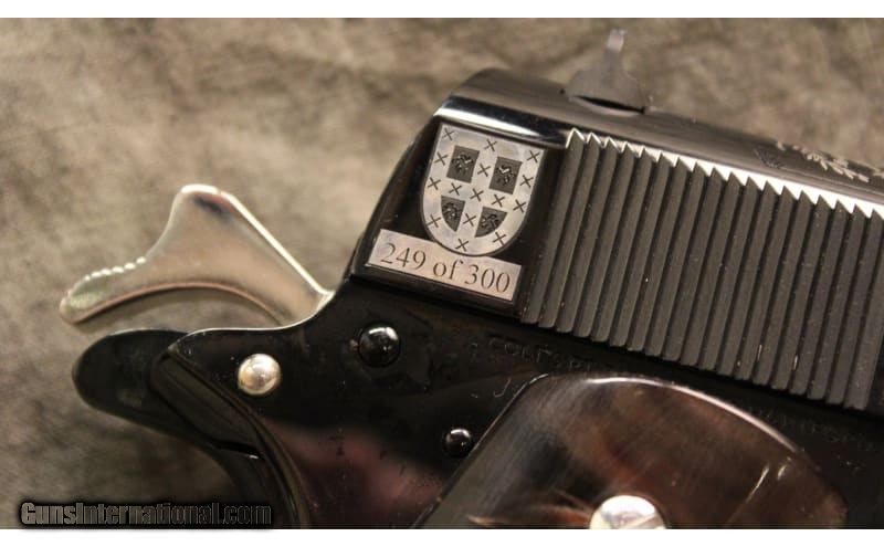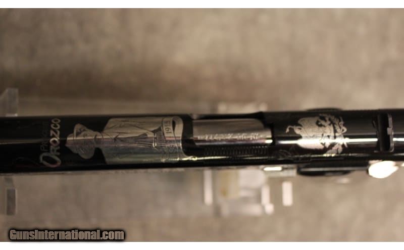 Description: This firearm is brand new and never fired. 249 of 300 The Orozco Colt 1911 is the third production in the Mexican "La Revolucion" series. To pay tribute to revolutionary leader Pascual Orozco, SK Customs introduced a limited run of only 300 Colt Government Models chambered in 38 Super. Each pistol features high polished blue finish, Cannas Lilly scroll engraving and silver inlays. New in Colt Factory Box. .38 Super SOLD Barrels: 5in Weight: 3lb Item Location: Pearland, TX |