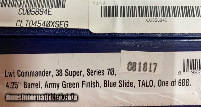 Description: Colt Lightweight Commander .38 Super 4.25" Army Green/Blued Talo Exclusive - Factory New SOLD |