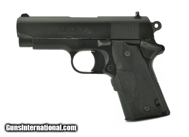 Description: Colt Lightweight Officers .45 ACP caliber pistol. Alloy frame model with laser grips and black finish. Very good condition.
