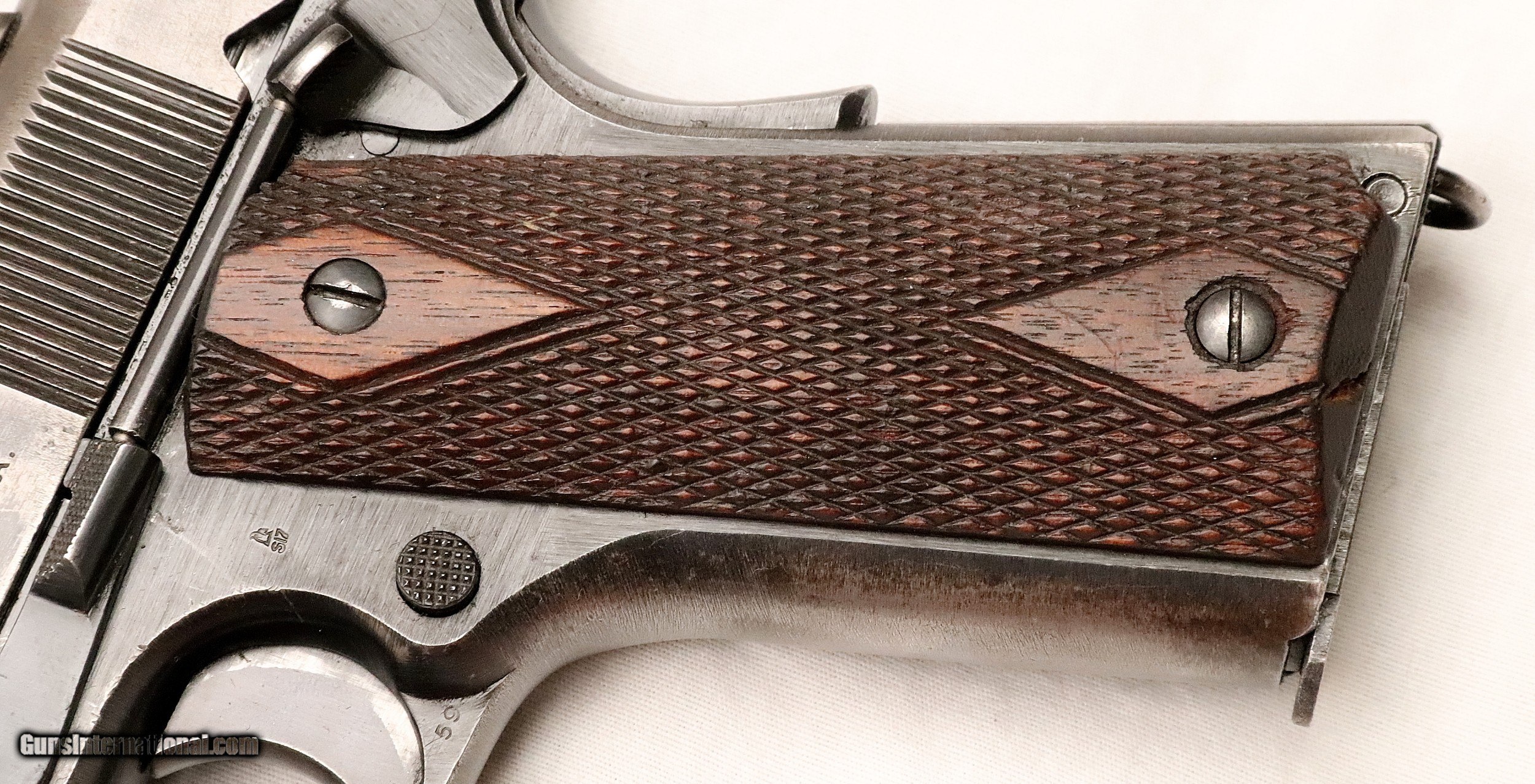 Description: SOLD........This Colt M-1911 was Mfg’d in 1918 and appears to have remnants of Colts “Black Army” finish. The frame has the Heart Shaped cut-outs on the mag. well sides. It has a “HS” marked barrel (c.1943) with a bright shiny bore. All other parts are correct including the great two-tone Mag. This is a nice example of a WWI era Colt. Somehow this old fellow escaped the WWII re-build & Re-Finish process. I guess it was a Doughboys’ souvenir of his service. .45 ACP with a 5” barrel. Serial Number 543286. FFL Required Beaver Creek Arms TERMS & CONDITIONS Objective: As a collector of 35 years and Licensed Firearms Dealer since 1989 I have a clear definition of a satisfactory transaction. I will be paid as we agreed to, and you will be satisfied with your purchase. My goal is to establish a client list of satisfied repeat customers who will recommend me to other collectors. It’s just that simple. Exiled Saudi princes with secret funds needing change from an over paid purchase need not apply. Notice: ALL Federal, State, & Local firearms laws will be followed. I will take NO shortcuts in the process of a legal sale or transfer, so please don’t ask. SHIPPING: Normally shipments are made via U.S.P.S. Priority Mail, Insured, with a return receipt. Packing, Shipping and Insurance cost for this handgun is $35.00, Availability: All items are in stock and available for immediate shipment. Please call or email and an Item will be held up to a week with your Name, Address, & Phone Number. Items marked Reserved are being held for awaiting payment or on layaway. If you are interested in a reserved item, please call or E-Mail to be placed on a backup list. FIREARMS: Modern firearms, post 1898, can only be shipped to a Type 01 Federal Firearms License address. Curio-Relic firearms, as defined by the BATF list, can usually be shipped to a Type 03 Collectors License address. Some states have additional restrictions such as CA, CT, DC, IL, MD, NJ and NY. A signed valid FFL license copy either mailed or emailed will be required for shipment to only the license address. Antique firearms, pre 1898 do not require a Federal License. For purchase, a copy of a Government Issued Identification (Driver’s License, Etc.), showing date of birth and current address will be required. GUARANTEE: Your complete satisfaction is assured, see objective above. If you are not satisfied, please contact me within 3 days of receipt. Please don’t fire the weapon, safety, function and accuracy are NOT Guaranteed. Any weapon offered by Beaver Creek Arms is never test fired nor is there any representation the gun is functional and safe to fire. These guns are sold for collectors and only represented as used firearms that must be checked by a competent person, observe all the necessary safety precautions prior to attempting to load and fire one of these weapons RETURNS: Returns must be made within 3 days of receipt. They must be received in exactly the same condition with no parts exchanged. If it has been altered, damaged, or fired, a refund will not be made. Packing, shipping and insurance cost will not be refunded. All layaway purchases are returnable for merchandise credit only. PAYMENT: Bank check, Personal check, and Money Orders are preferred. Visa and MasterCard are accepted with a 3% processing fee. For Visa and MasterCard orders please provide the account number, code number, expiration date, name on card, phone number and card billing address. This information can be phoned in, or E-Mailed. All orders must be paid in advance, C.O.D. orders are not accepted. Checks, both Bank and Personal must clear before the order will be shipped, usually a 2 week delay. LAYAWAYS: A 20% deposit is required. Balance is due in 30 days. Deposits are non-refundable and are forfeited after 40 days. Layaway sales are returnable for merchandise credit only. SALES TAX: Pennsylvania state sales tax is 6% for in state purchases. The payment of other states sales tax, if applicable, for shipped items is the buyer’s responsibility. DISCREET: Client information will remain Confidential. Your privacy is protected. SOLD Curio/Relic: Yes |