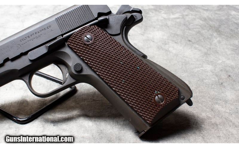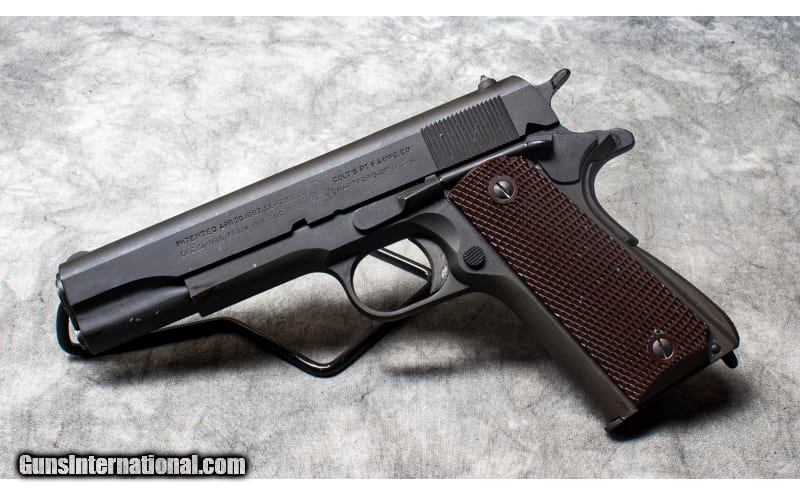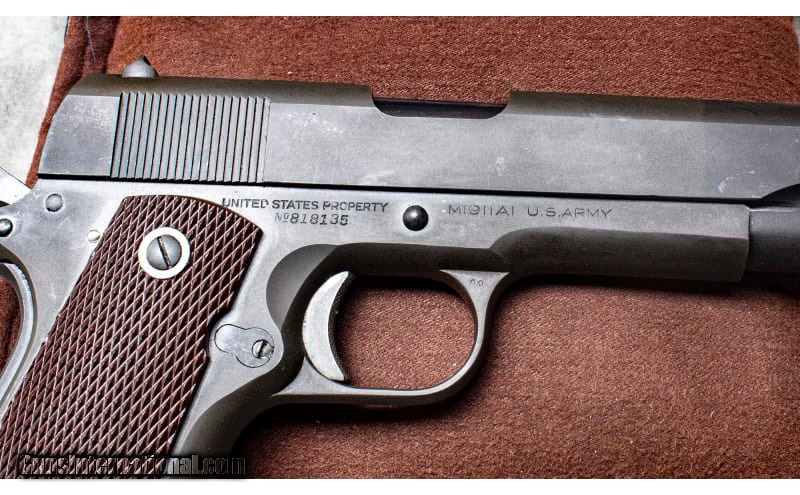 Description: This Colt M1911A1 comes in .45 Auto. This M1911A1 dates all the way back to WW2. MFG in 1942, This M1911A was issued to the U.S. Army. Comes with Two 8 round magazines, that appear to be from the original time period. Stamped "Colt .45 Auto" on magazine baseplates. Has all proper markings, including US property Marks, inspector stampings, and "P" heat treating marks. .45 Auto SOLD Chambers: 8+1 Metal Condition: Good Wood Condition: Good Bore Condition: Good Barrels: 5 Inches Weight: 39 OZ. Sights: Fixed Item Location: Ft. Myers, FL |
