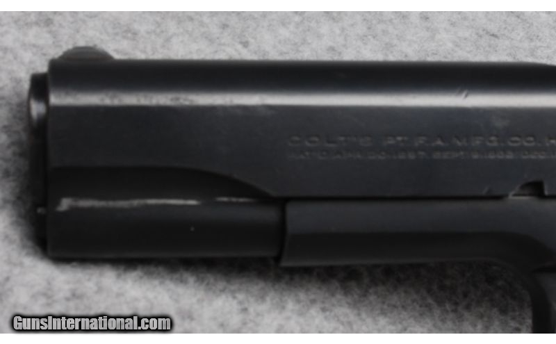 Description: This is a commercial model Colt M1911A1 Government Model pistol in .45 ACP. The serial number dates it to 1924. This pistol has been refinished with some pitting visible underneath on the front left side of the slide as can be seen in the picture. The arched mainspring housing with lanyard loop, safety, slide release, wide hammer, and magazine release are all checkered as they should be. The grips have been replaced with checkered walnut grips with gold Colt medallions, and the rear sight is an MMC adjustable one. The bore has good rifling with some frosting. SOLD Manufacturer: 1924 Caliber Info: .45 ACP Wood Condition: Good to Very Good Refinish Bore Condition: Good Rifling with Some Frosting Barrels: 5 Triggers: Ribbed Sights: MMC Adjustable Rear Sight and Factory Colt Front Sight Extras: Replacement Colt Walnut Grips Item Location: Reno, NV |