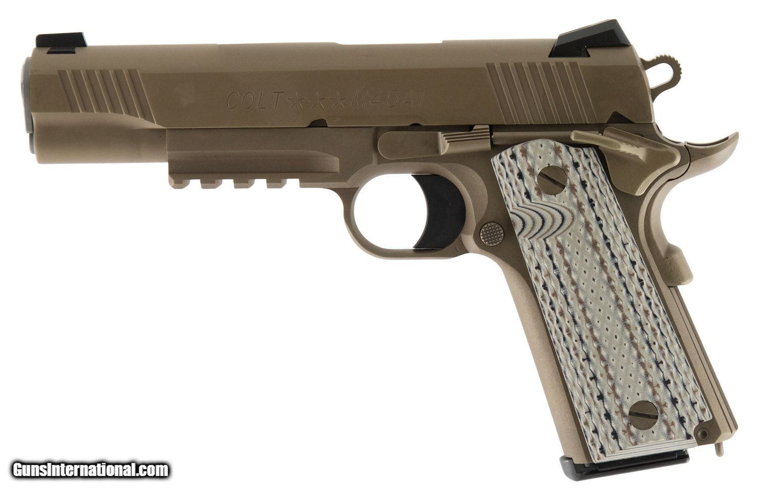 Description: Guns Listing ID: prod3736 The Colt Rail Gun is a family of military style 1911 semi-automatic pistols. With a 5 barrel the Colt Rail Gun features Novak 3-dot sights and an M1913 Picatinny rail for accessory attachments. Custom G10 grips and an Upswept Beavertail grip safety ensure a firm steady grasp on the Colt Rail Gun. The dual spring recoil system reduces felt recoil for a more comfortable use in concealed carry situations or other uses. Details More than 100 years ago the Colt 1911 was chosen as the official sidearm for Americas Armed Forces. Today a Colt 1911 is once again proudly serving at the side of our countrys military. After a rigorous selection process the United States Marine Corps selected the Colt Rail Gun as their Close Quarters Battle Pistol (CQBP). This marks the first time since the end of World War II that a Colt 1911 is being shipped to the United States Government. - To honor the brave men and women of this important staple of Americas military might the Colt M45A1 will be made available. What makes the M45A1 stand out is its brown Decobond coated Stainless Steel Receiver and Slide Novak 3 Dot Night Sights and Flat Serrated Mainspring Housing with Lanyard Loop. The pistol also features an Enhanced Hammer Colt Tactical Ambidextrous Safety Lock and a 5 National Match Barrel. - Features - Novak 3 Dot Night Sights - Enhanced Hammer - Ambidextrous Safety Lock - Long Solid Aluminum Trigger - Flat Serrated Mainspring Housing with Lanyard Loop - Brown Decobond Stainless Steel Receiver and Slide - 5 National Match Barrel - MIL-STD-1913 Accessory Rail SOLD Manufacturer: COLT Model: M45A1 CQBP MARINE Caliber Info: .45 ACP Condition: new Barrels: 5 BARREL |