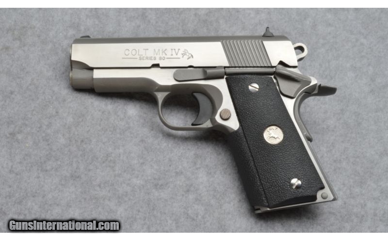 Description: Very nice two tone Colt Mark IV Officer .45 auto perfect for concealed carry shows some normal wear but a solid gun overall. SOLD Caliber Info: .45 Auto. Chambers: 7 round single stack mag. Metal Condition: Bright shiny with some normal scuffs marks. Bore Condition: Bright Barrels: 3 1/2 Inch Triggers: Single for single action. Stock: Factory black rubber textured grips with silver medalion Weight: 2 Pounds Sights: 3 White Dot. Item Location: Noblesville, IN |