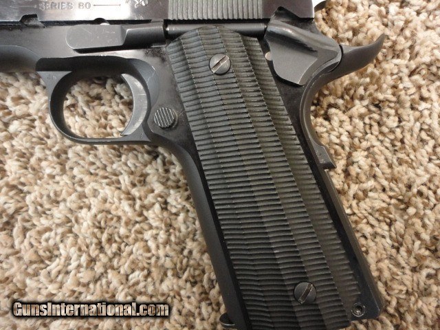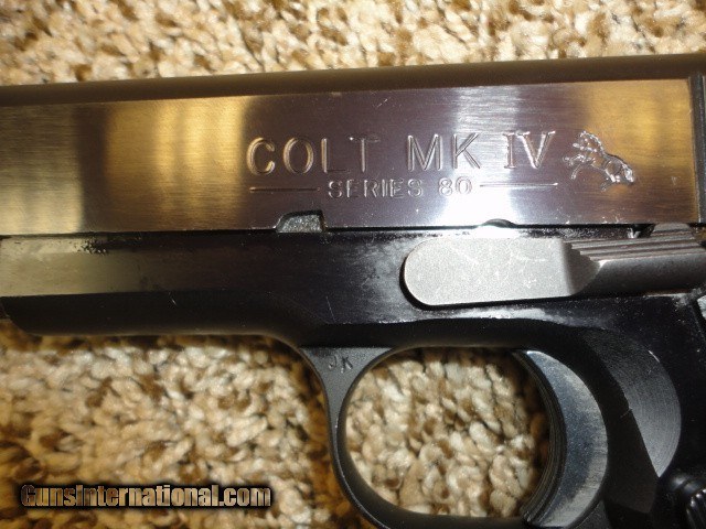 Description: 1984 COLT MK IV SERIES 80 OFFICER'S LIGHTWEIGHT PISTOL. Colt MK IV Series 80 Officer's Lightweight .45 ACP pistol, nice grips, Blued finish. Delta hammer. One magazine. Caliber / Gauge: .45 ACP Barrel Length: 4.5" Condition: Very good. Bright bore, strong rifling, comes with holster, but no box or paperwork. Would make a nice carry weapon. If you need more information or photos contact us These are consignment guns and we are a FFL Dealer. Buyer pays shipping & insurance cost, we ship Fedex with tracking information. SOLD Handgun Caliber: .45 ACP (.45 Auto) Manufacturer: Colt Model: MK IV SERIES 80 Serial Number: FL04071 Barrel Length: 4.5 |