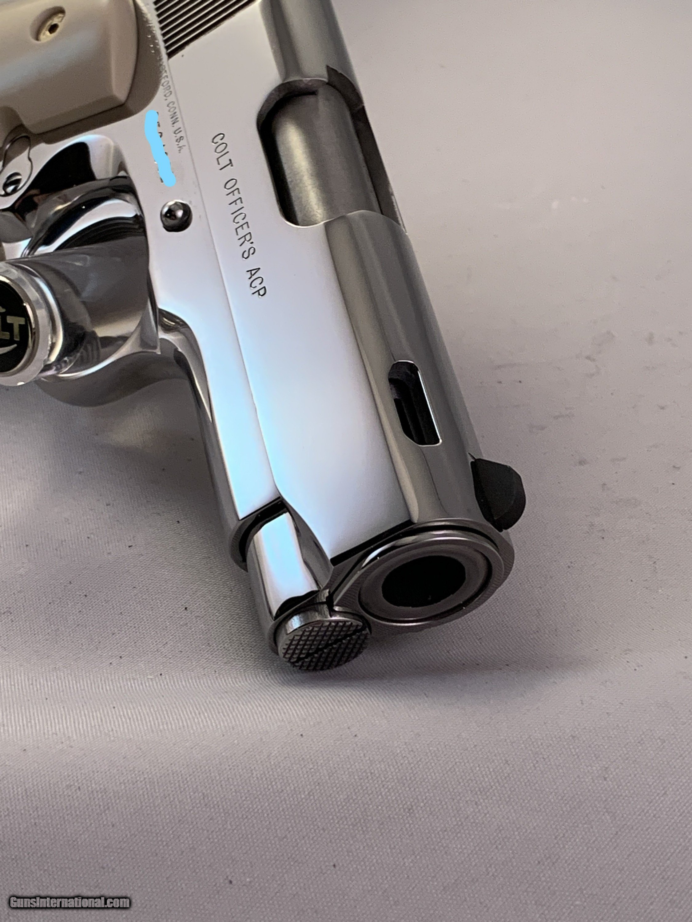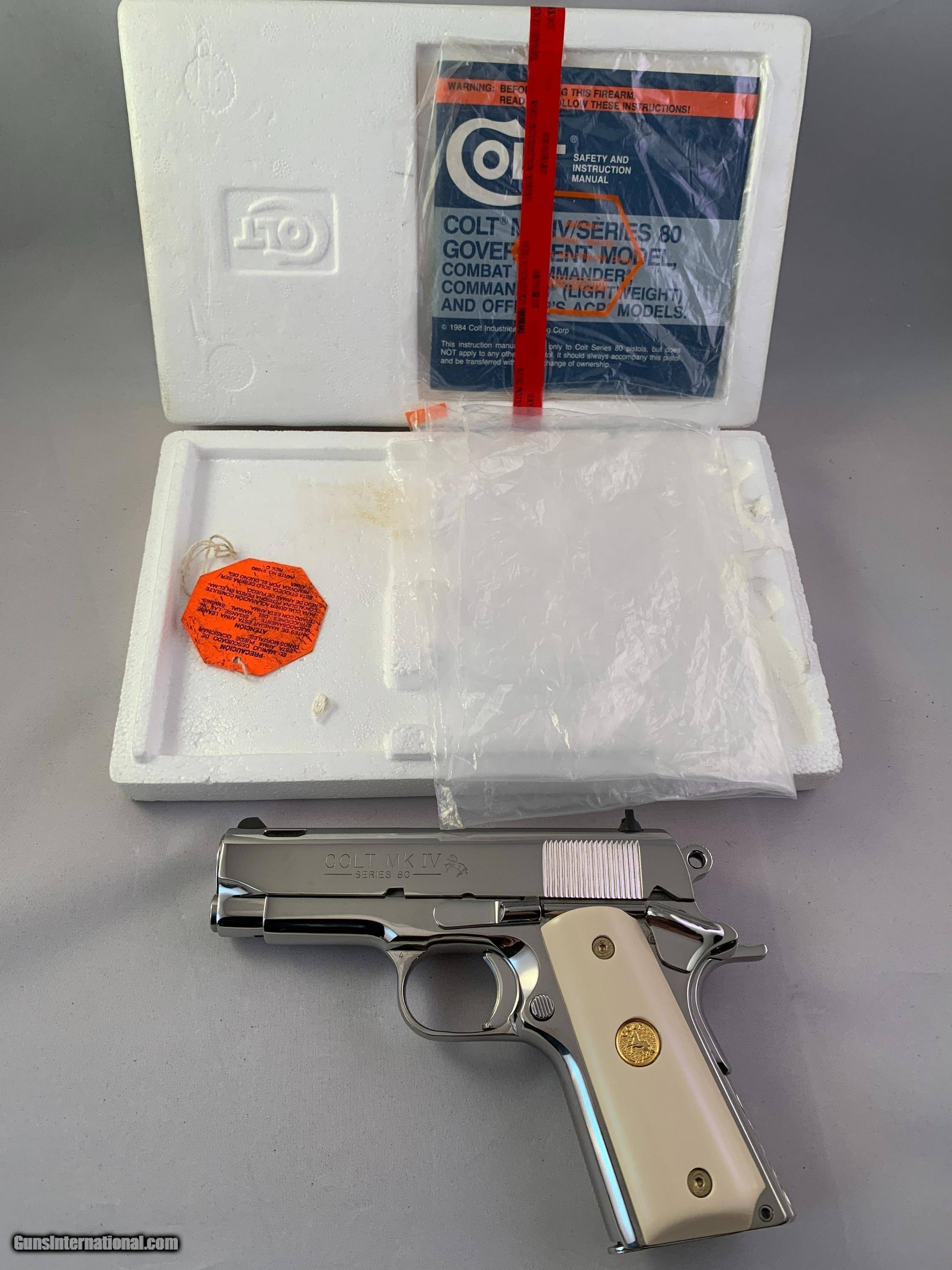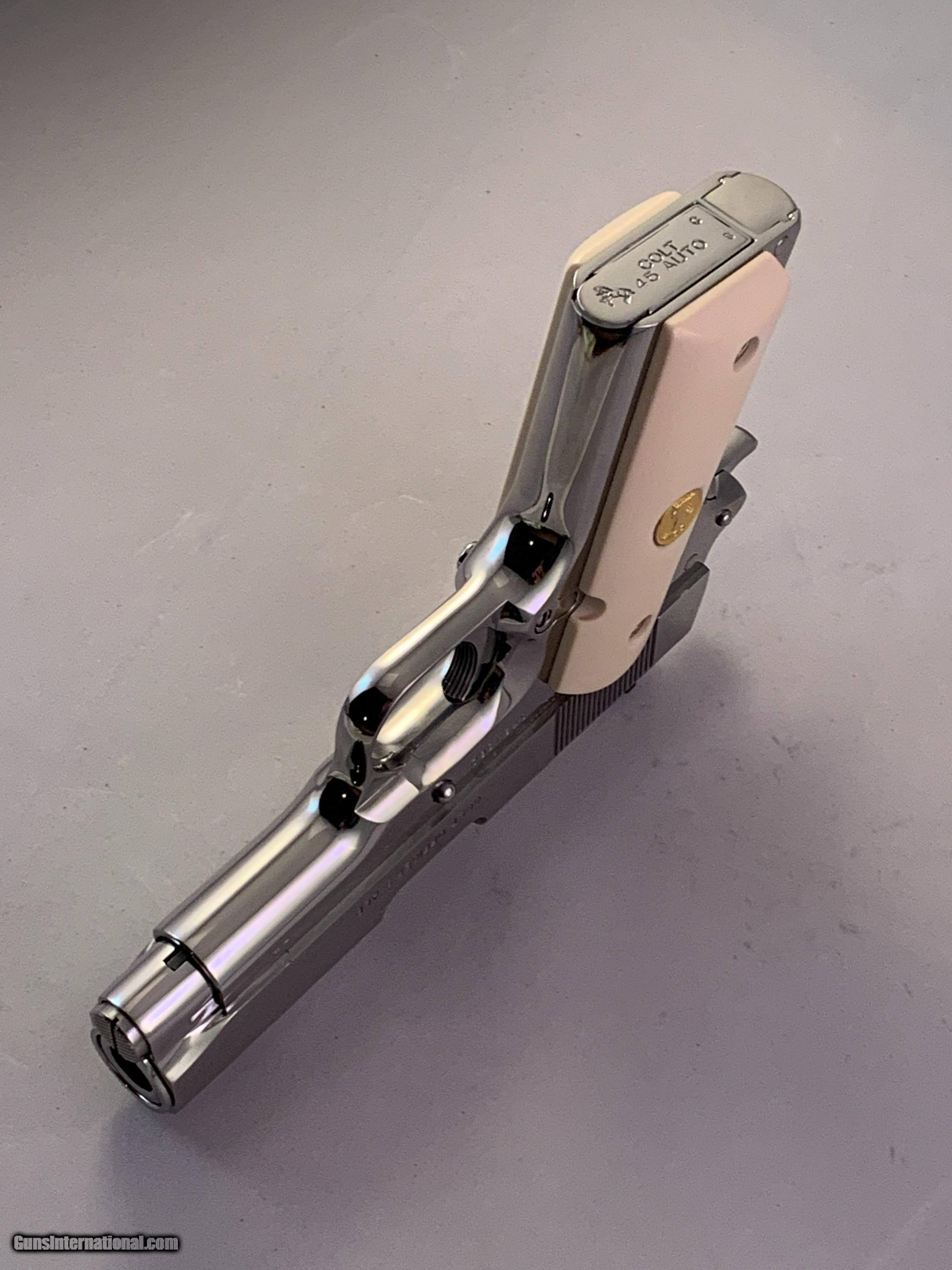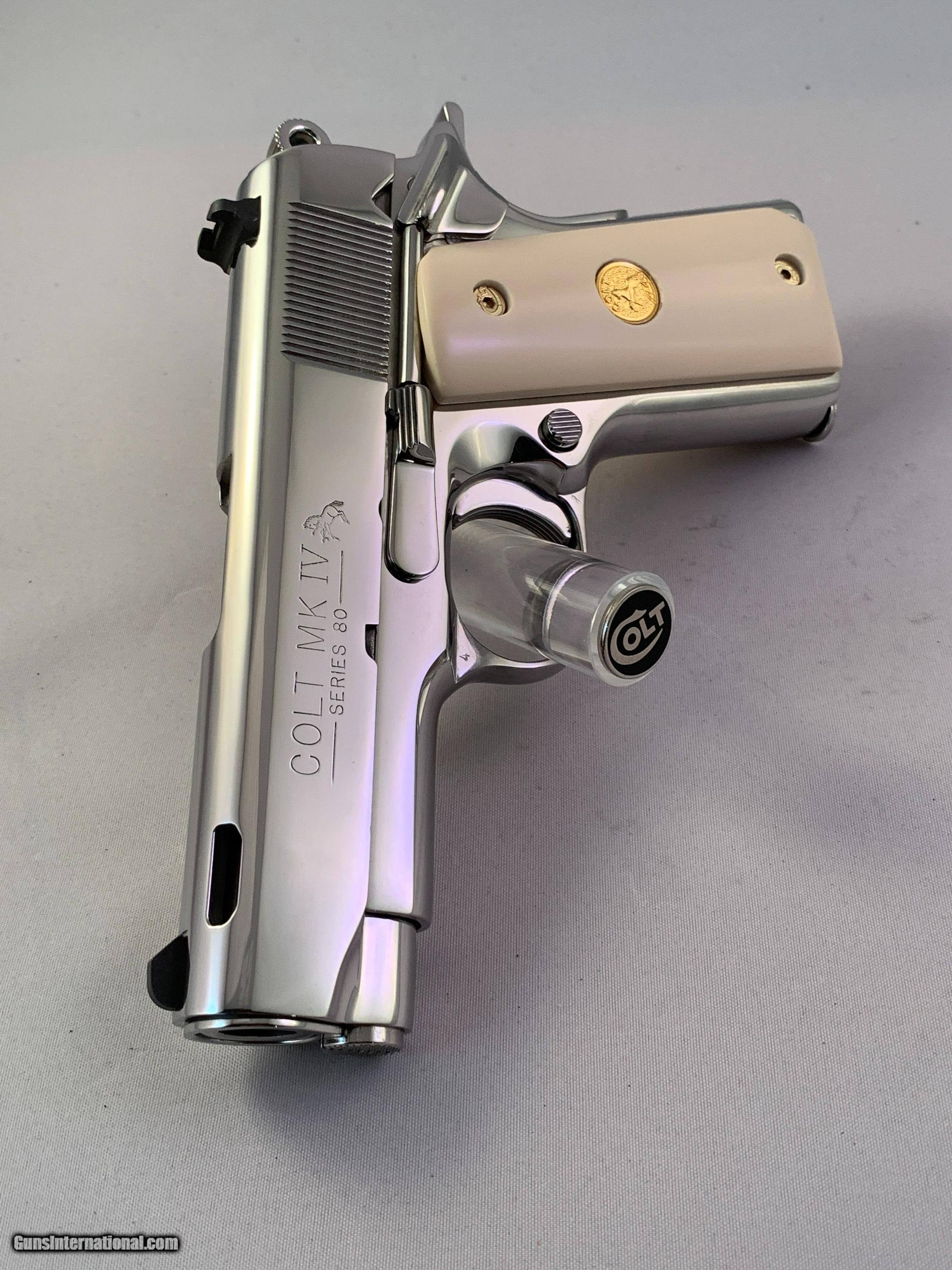 Colt MKIV Series 80 Officers Model CUSTOM Bright Polished Stainless with box, docs, presentation case